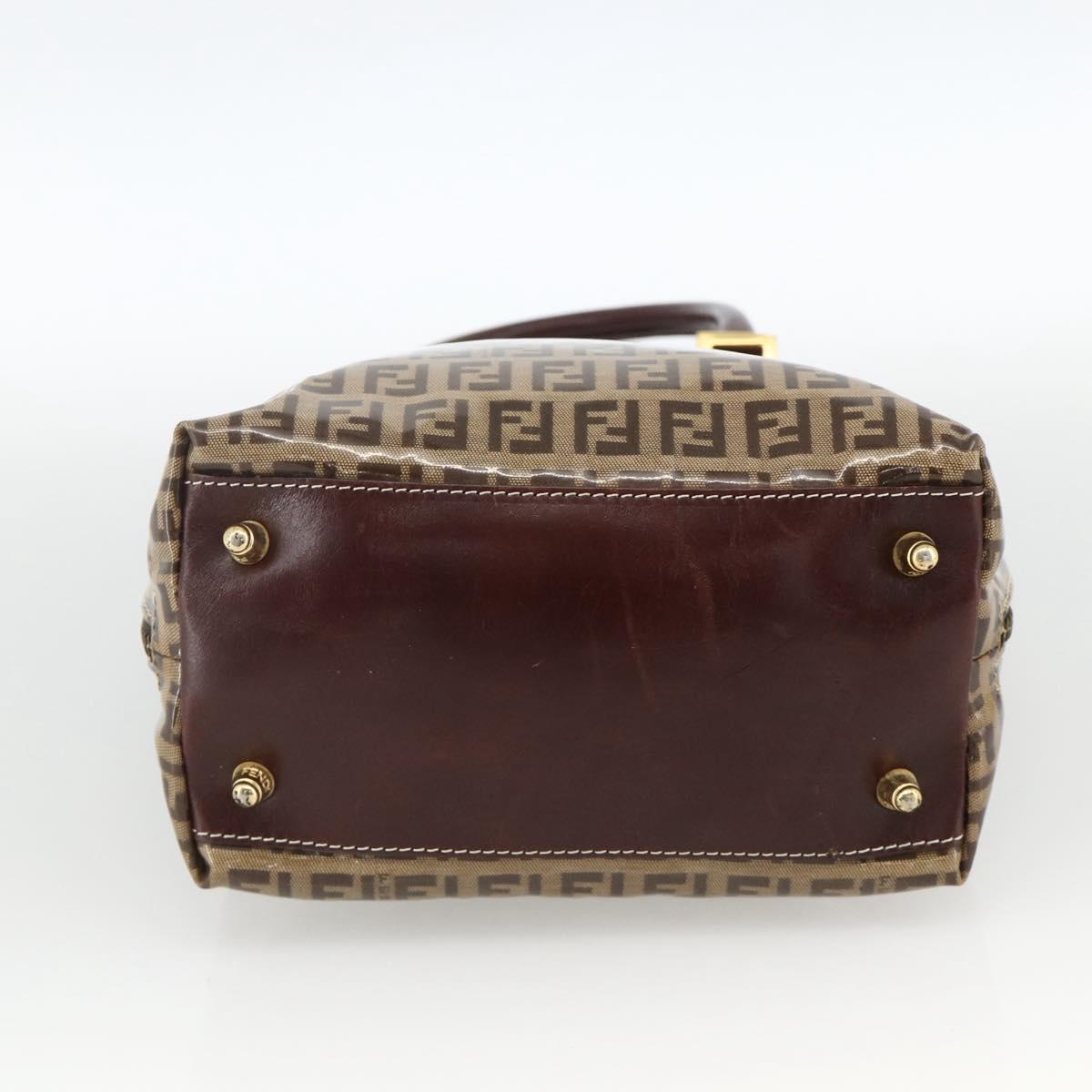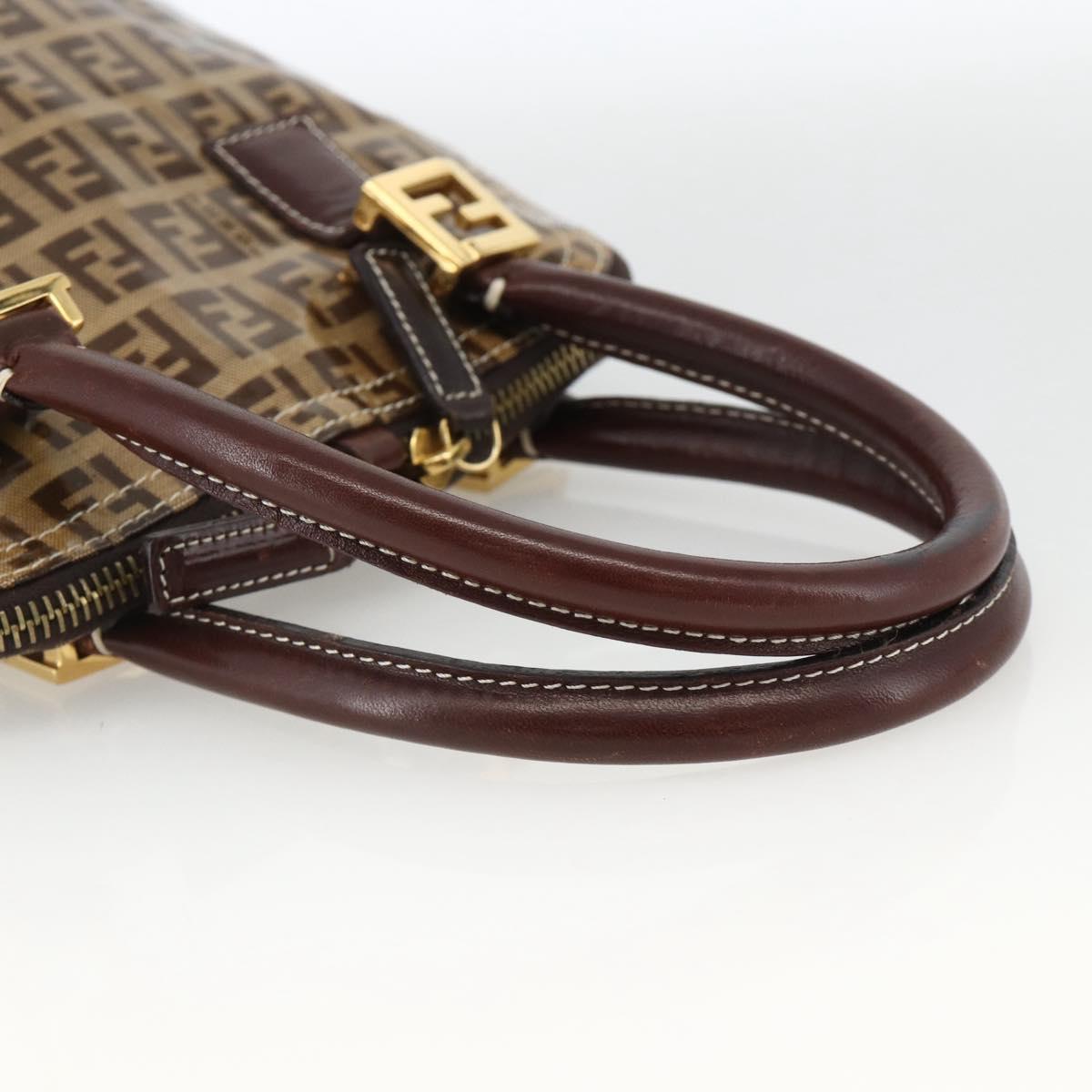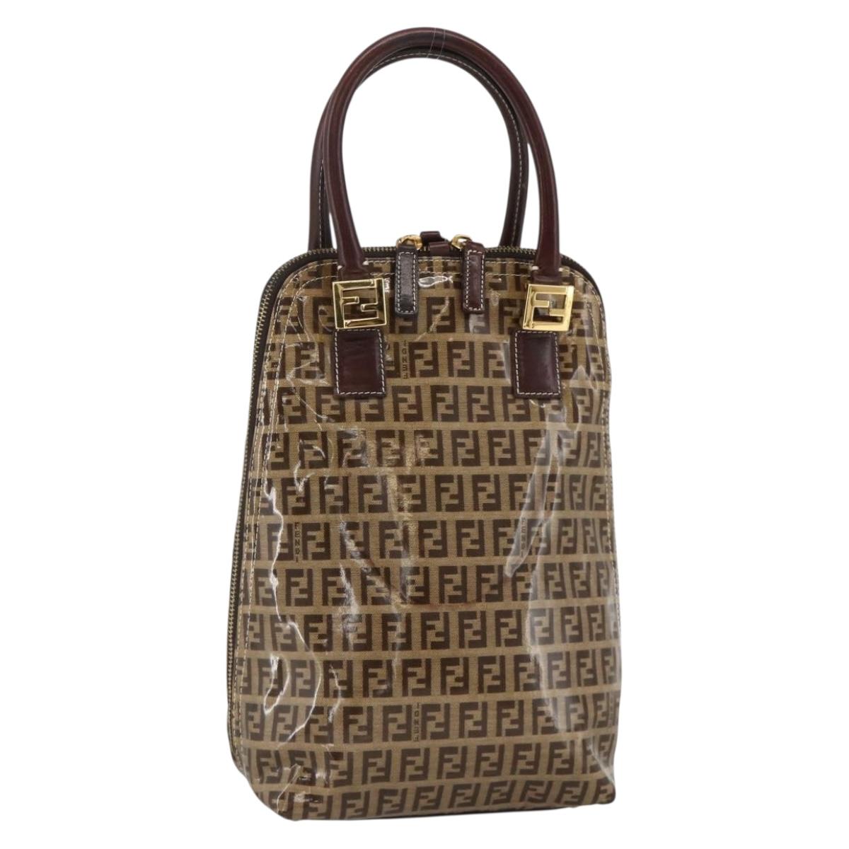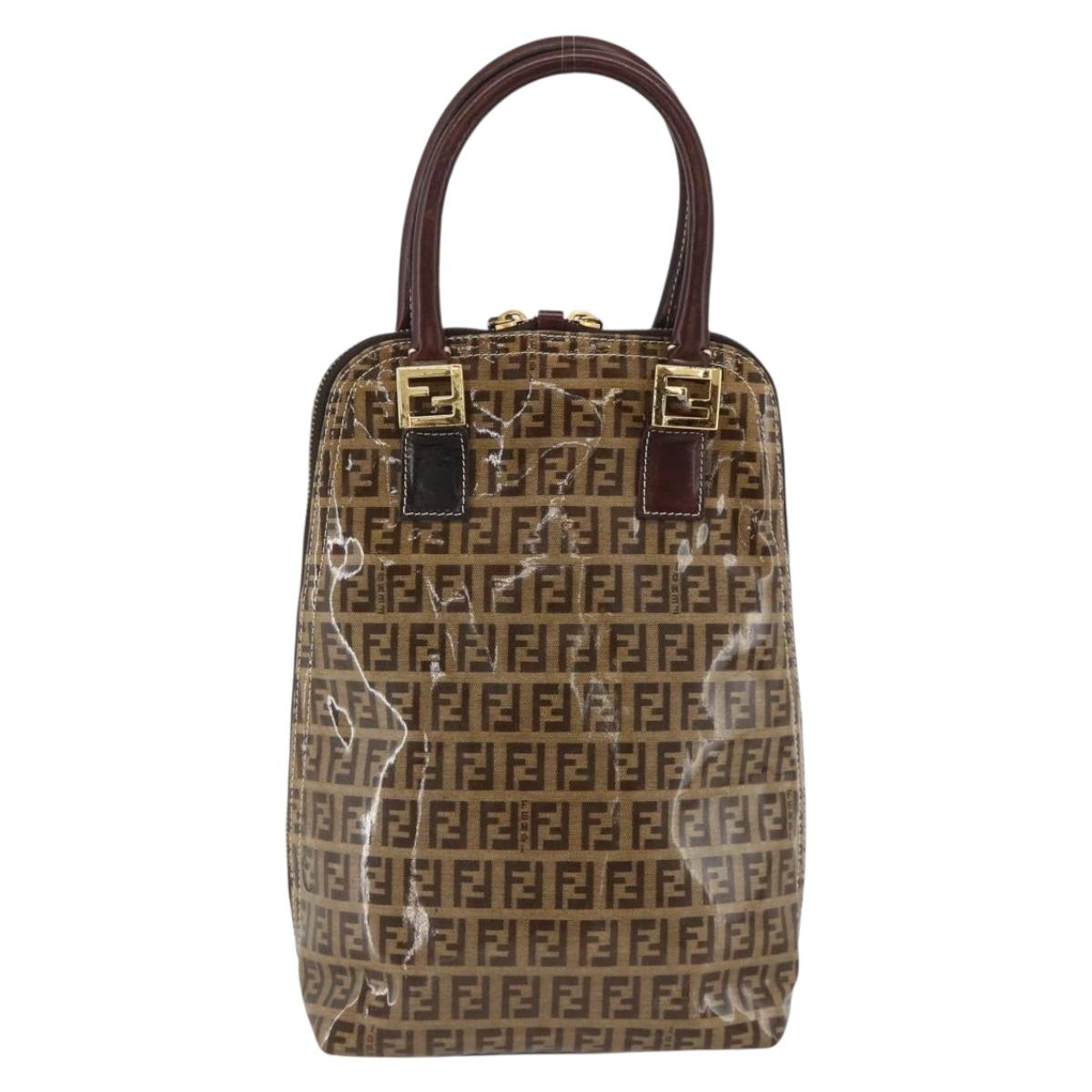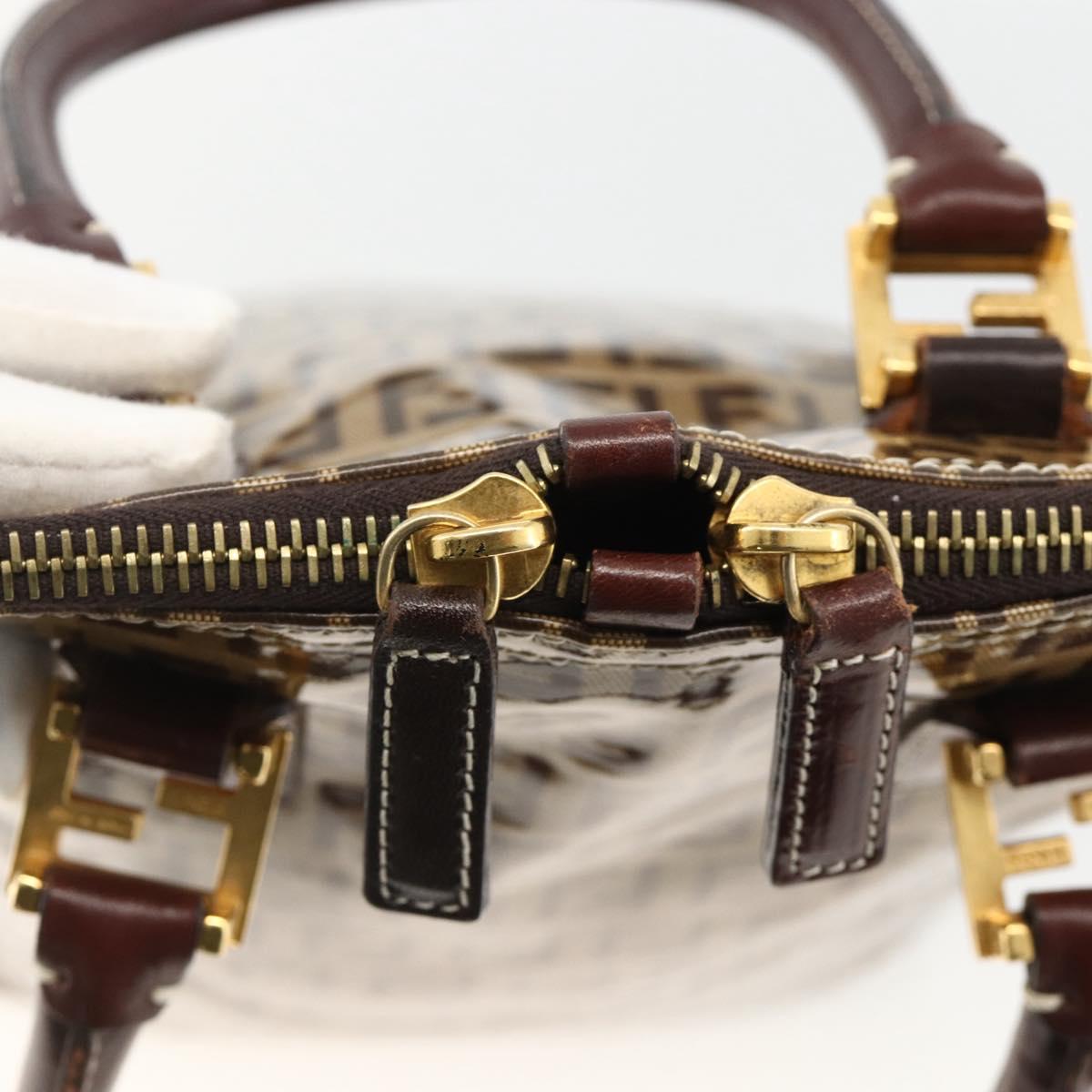 FENDI Zucchino Canvas Hand Bag Beige Gold Auth SW2327A