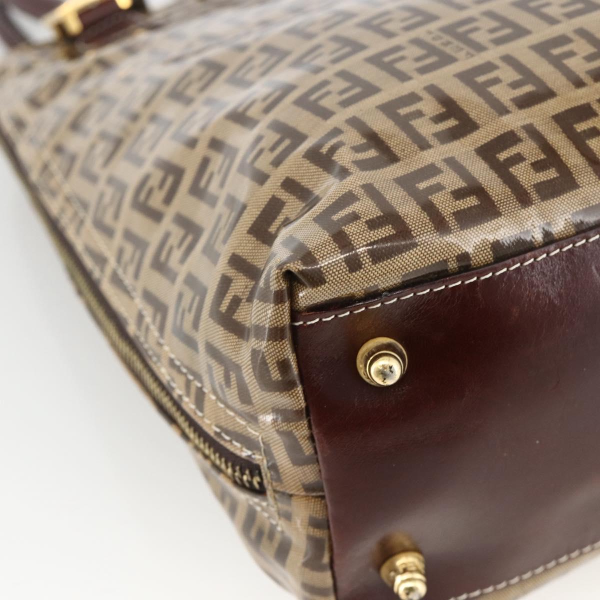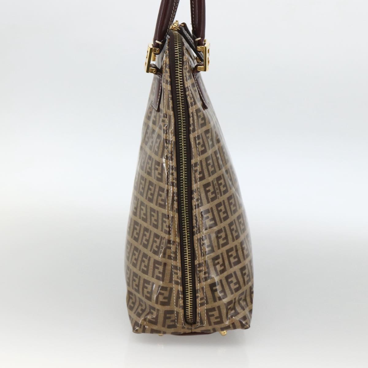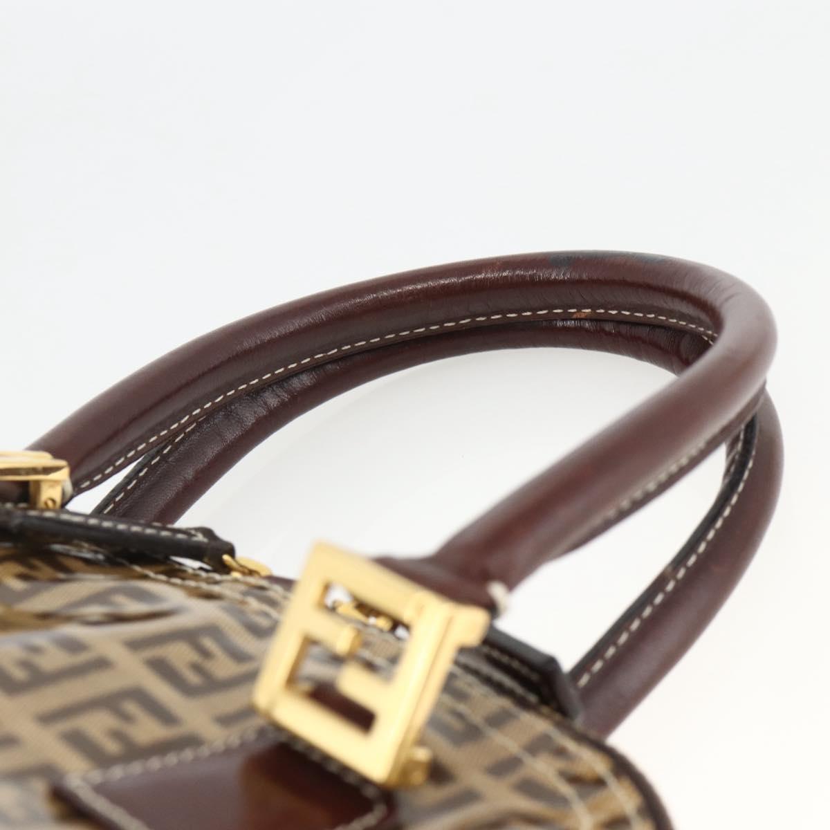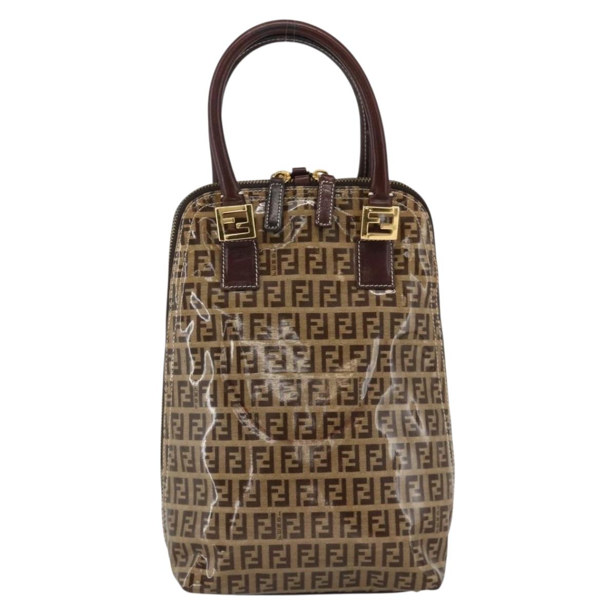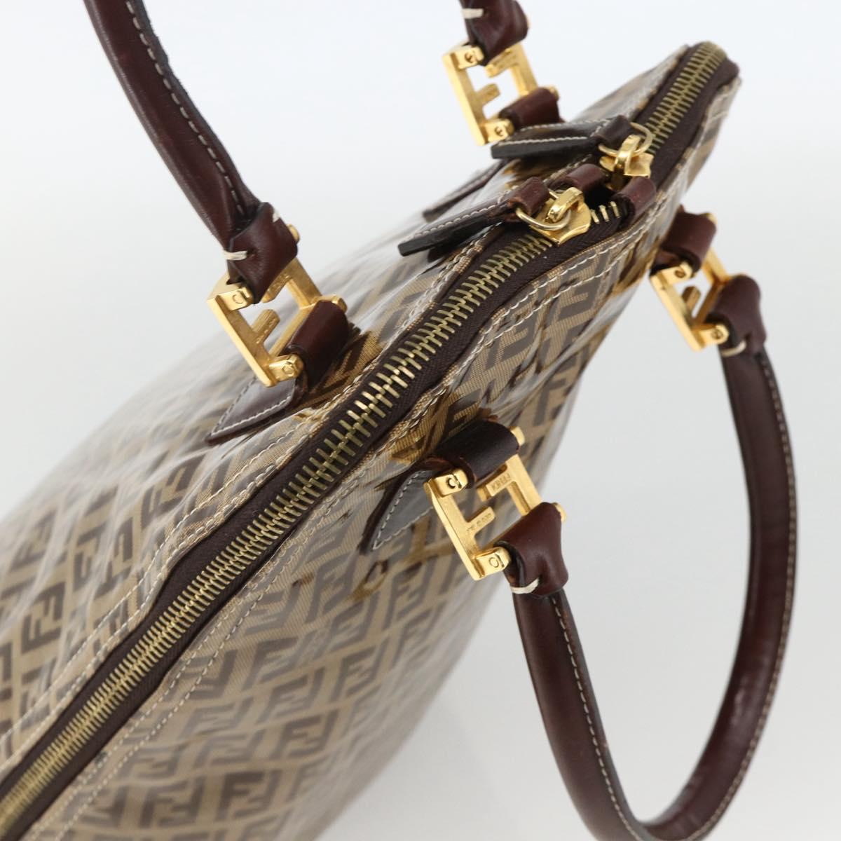 FENDI Zucchino Canvas Hand Bag Beige Gold Auth SW2327A