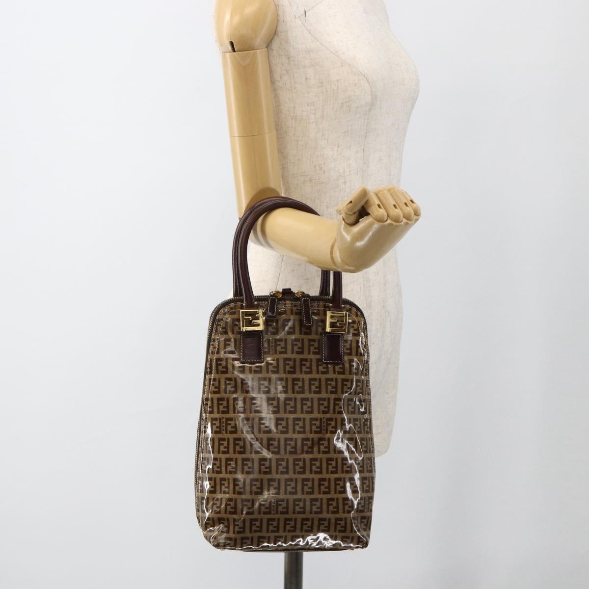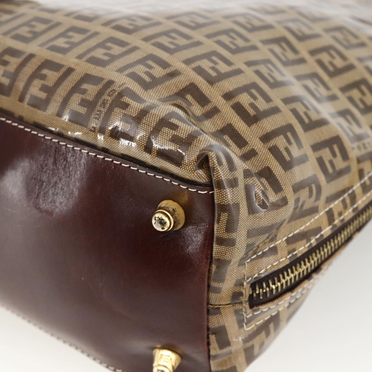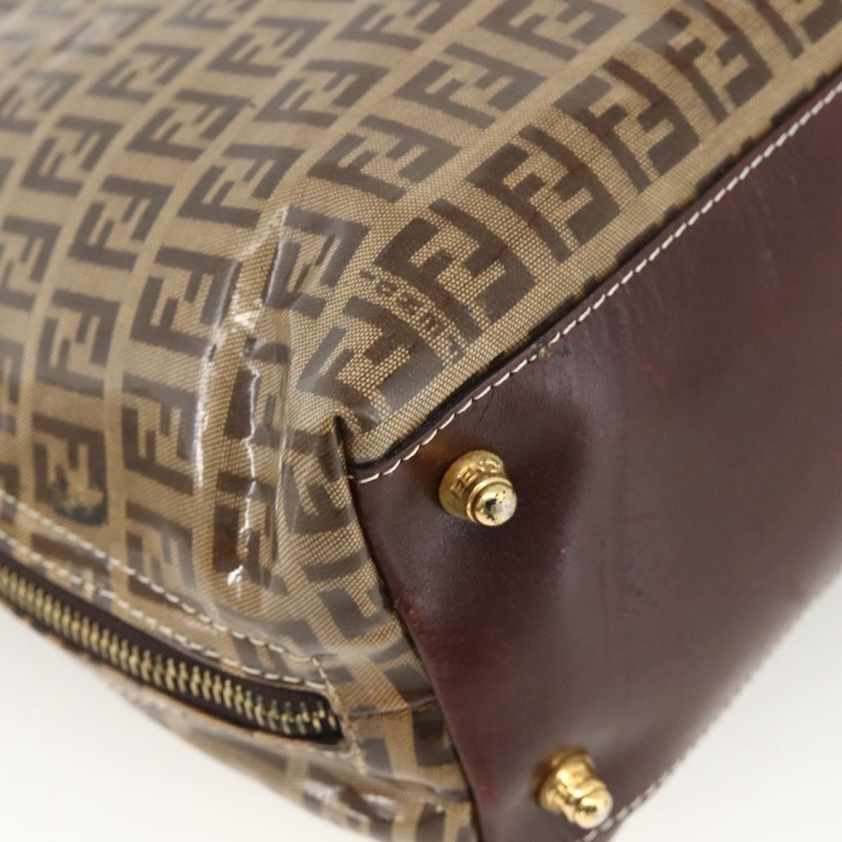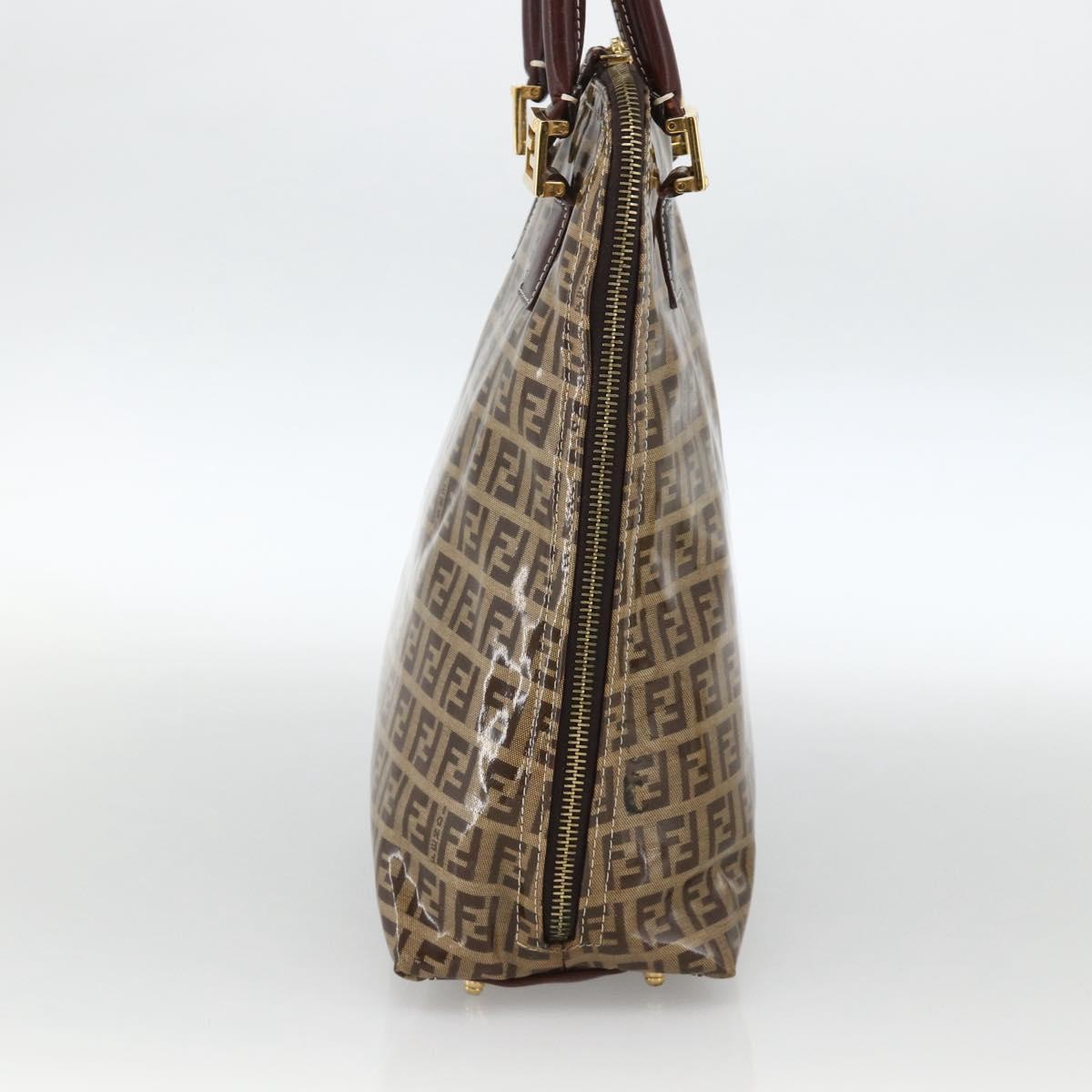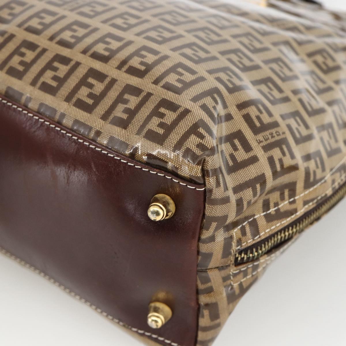 FENDI Zucchino Canvas Hand Bag Beige Gold Auth SW2327A