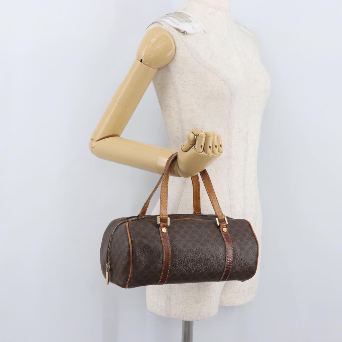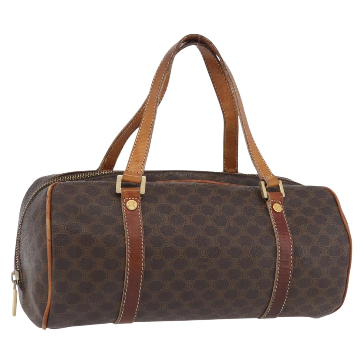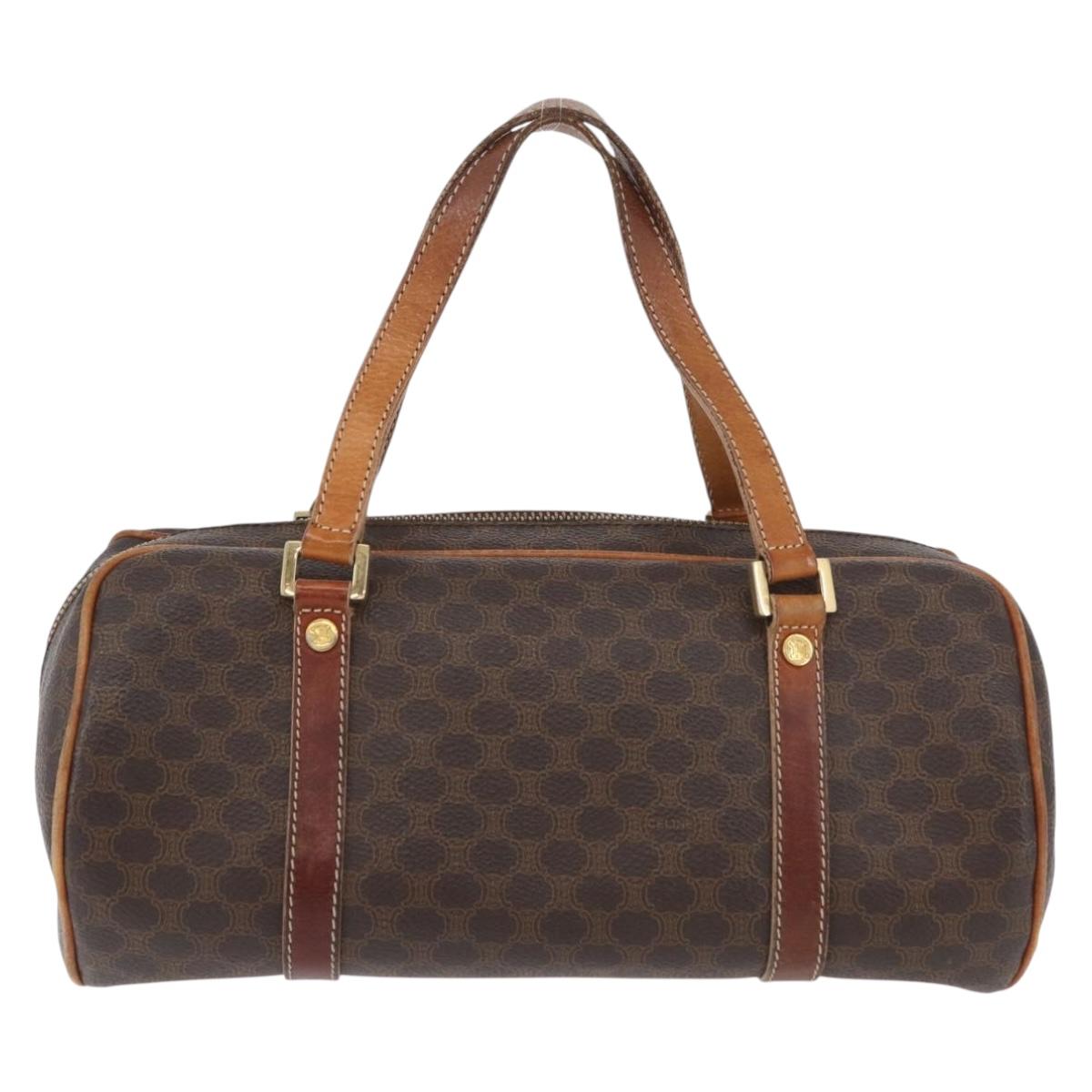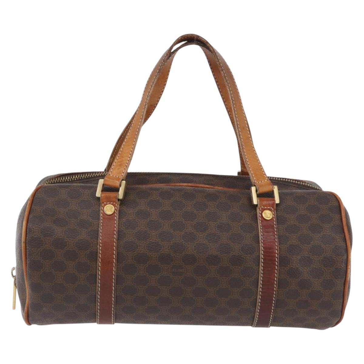 CELINE Macadam Canvas Hand Bag PVC Leather Brown Gold Auth SW2160