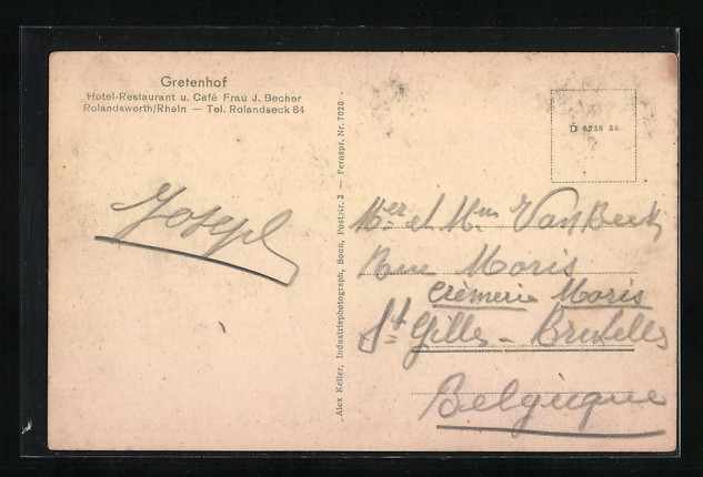 AK Rolandswerth /Rhein, Hotel-Restaurant u. Cafe Gretenhof, Inh. Frau J. Becher