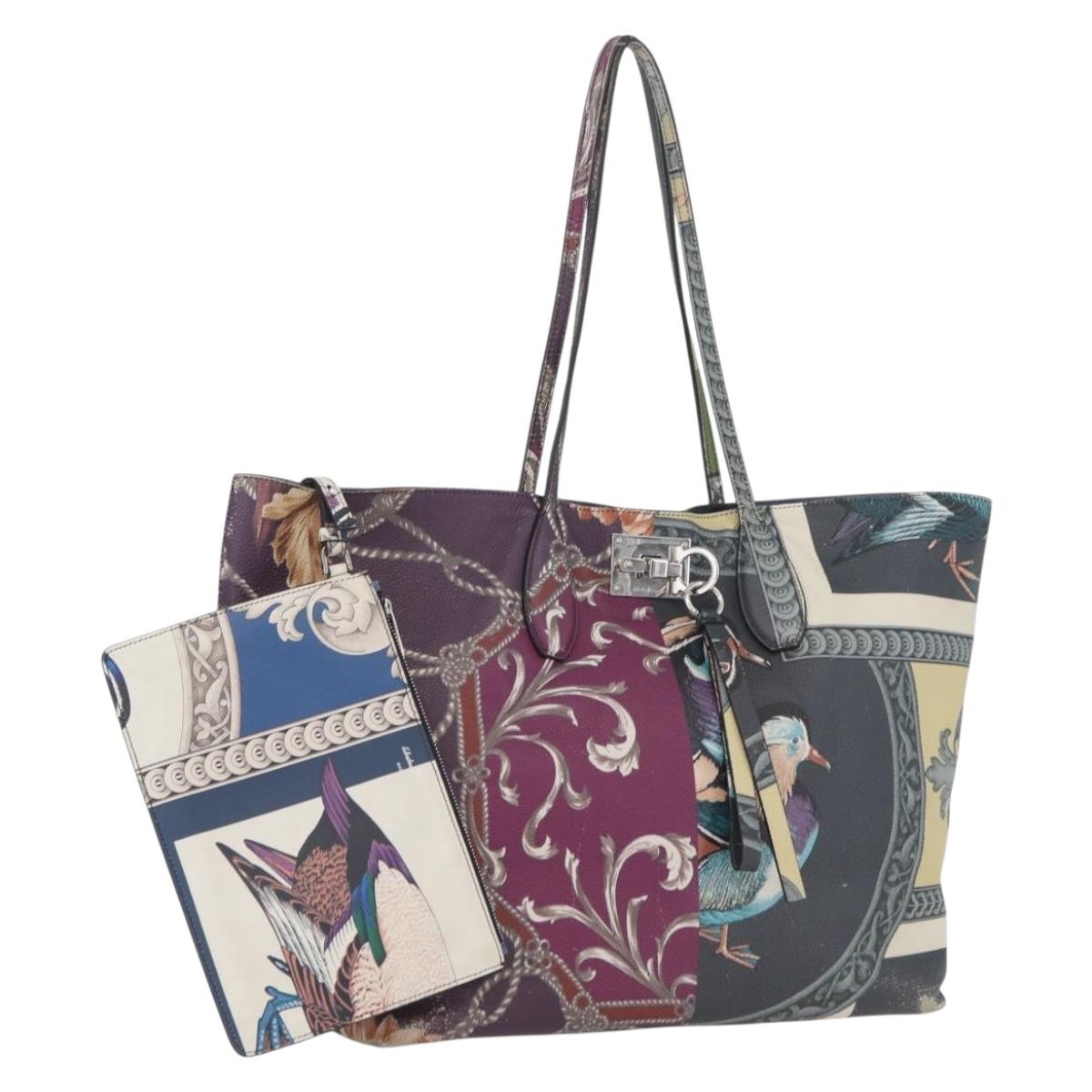 Salvatore Ferragamo Gancini Tote Bag Leather Multicolor Silver Auth LNZ658