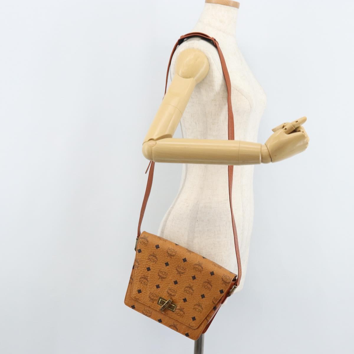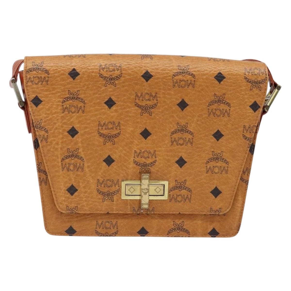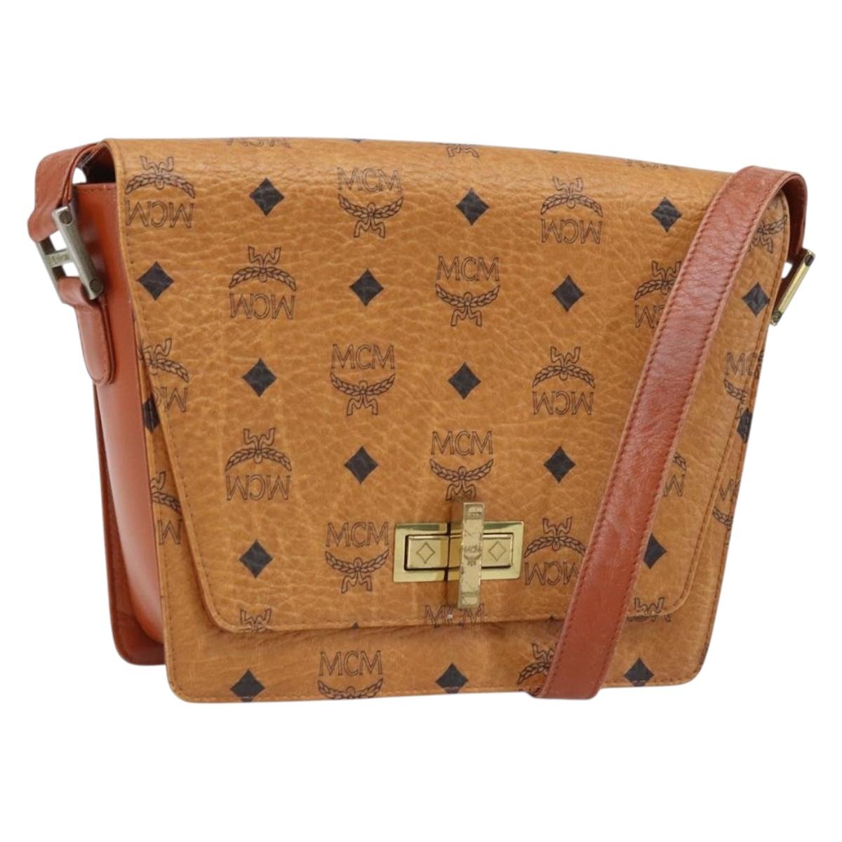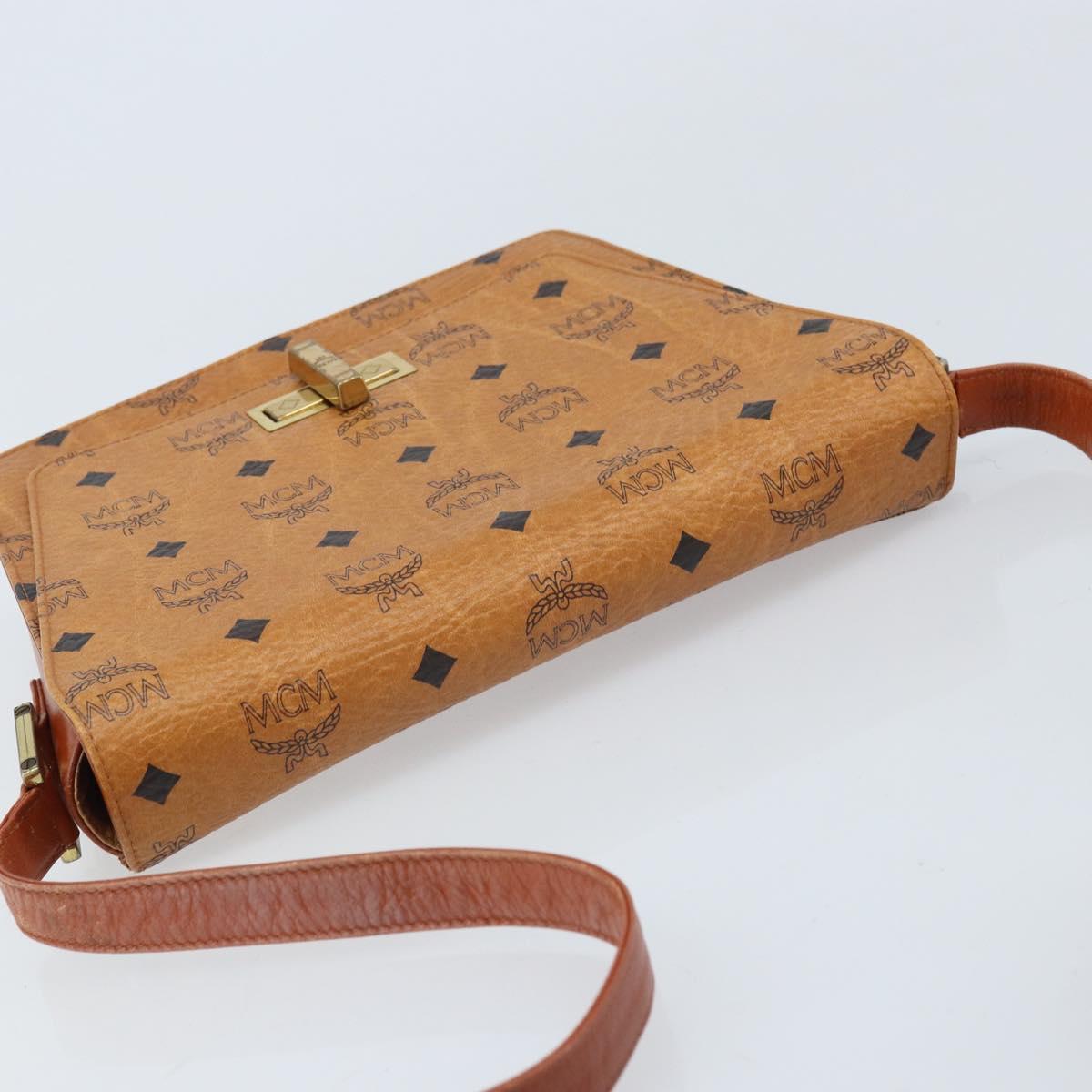 MCM Vicetos Logogram Shoulder Bag PVC Leather Brown Gold Auth gh1946