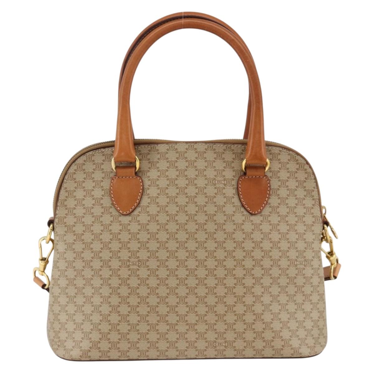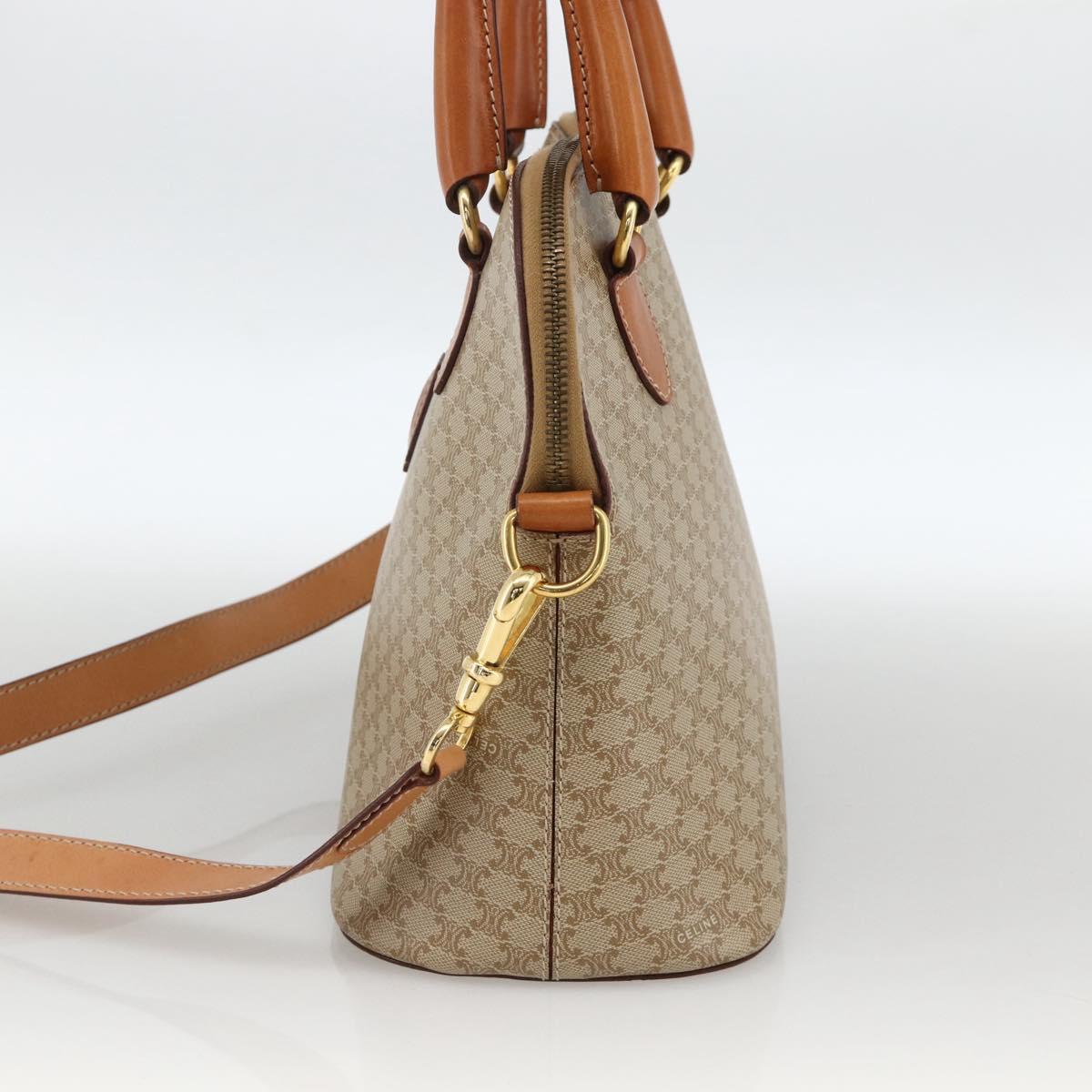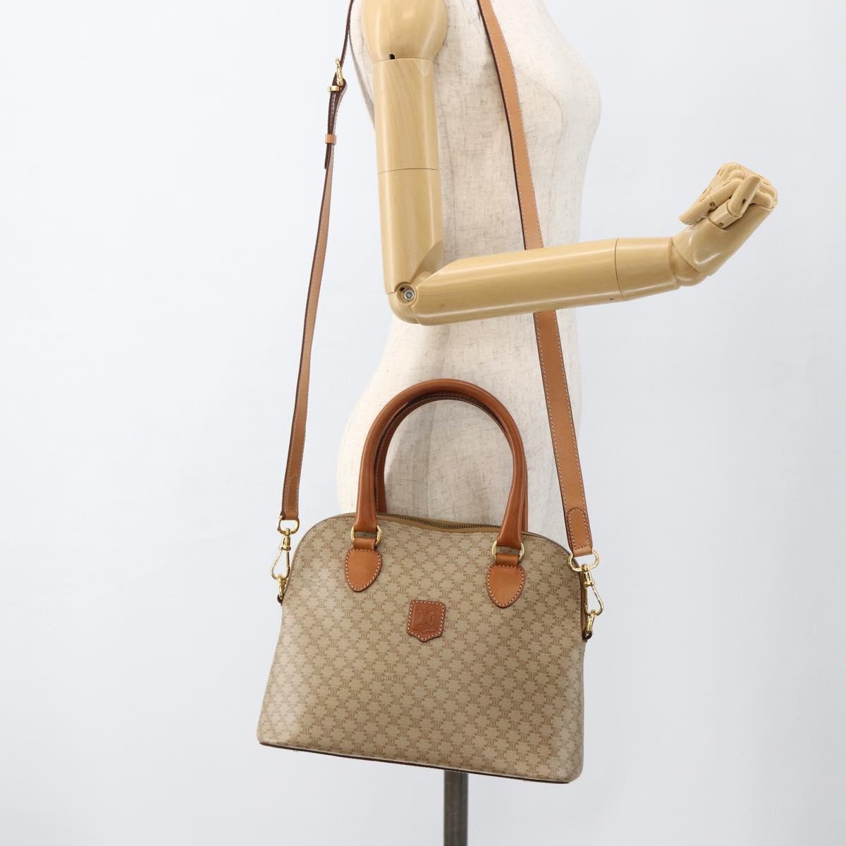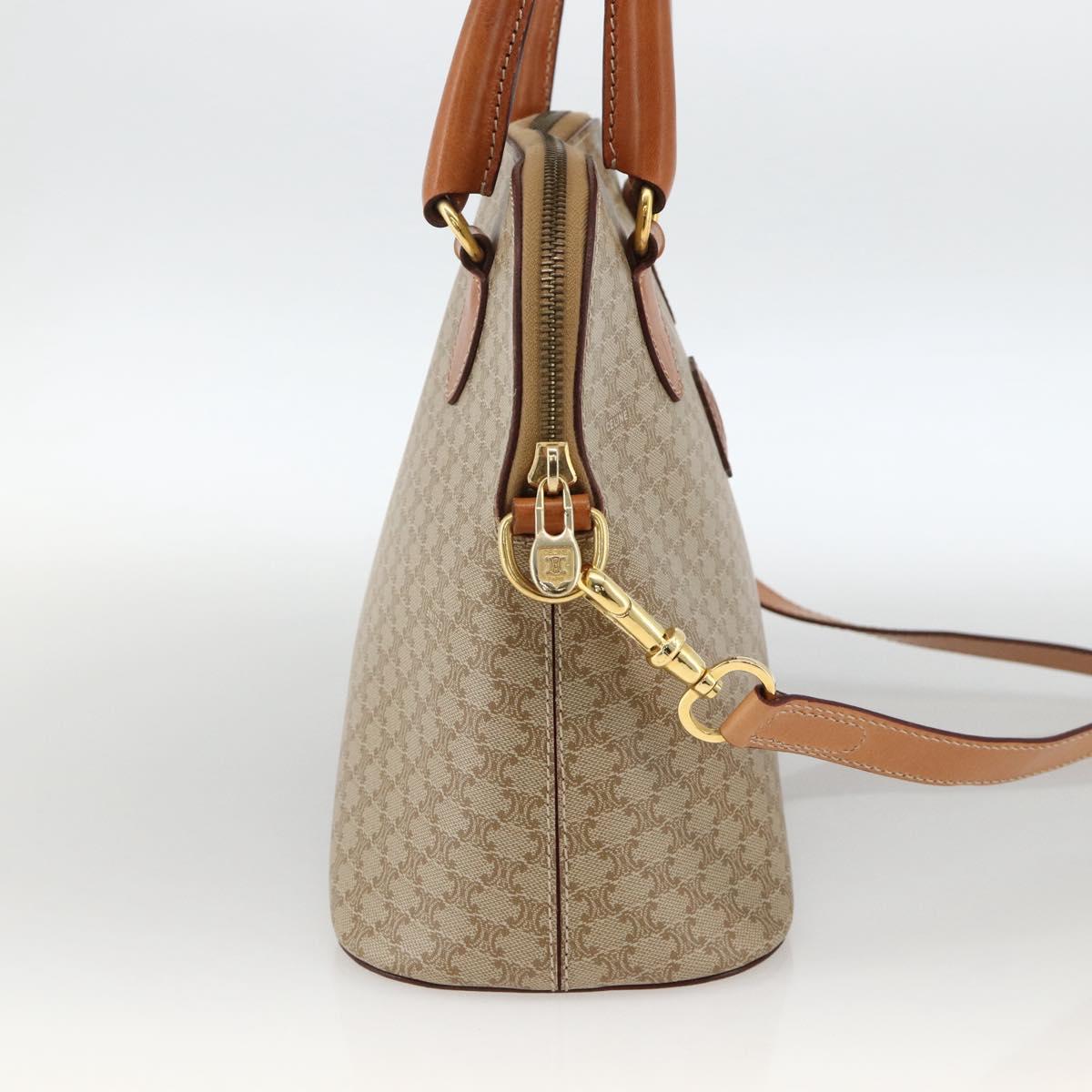 CELINE Macadam Canvas Hand Bag PVC 2way Beige Gold Auth AMZ532A