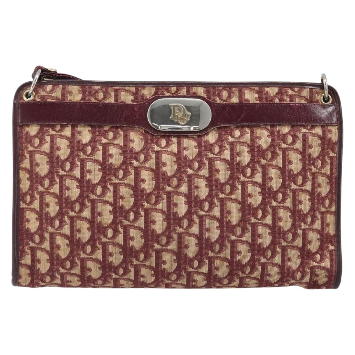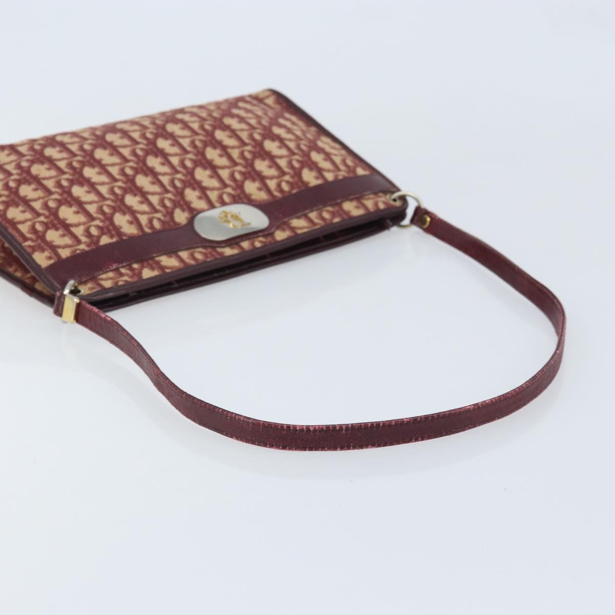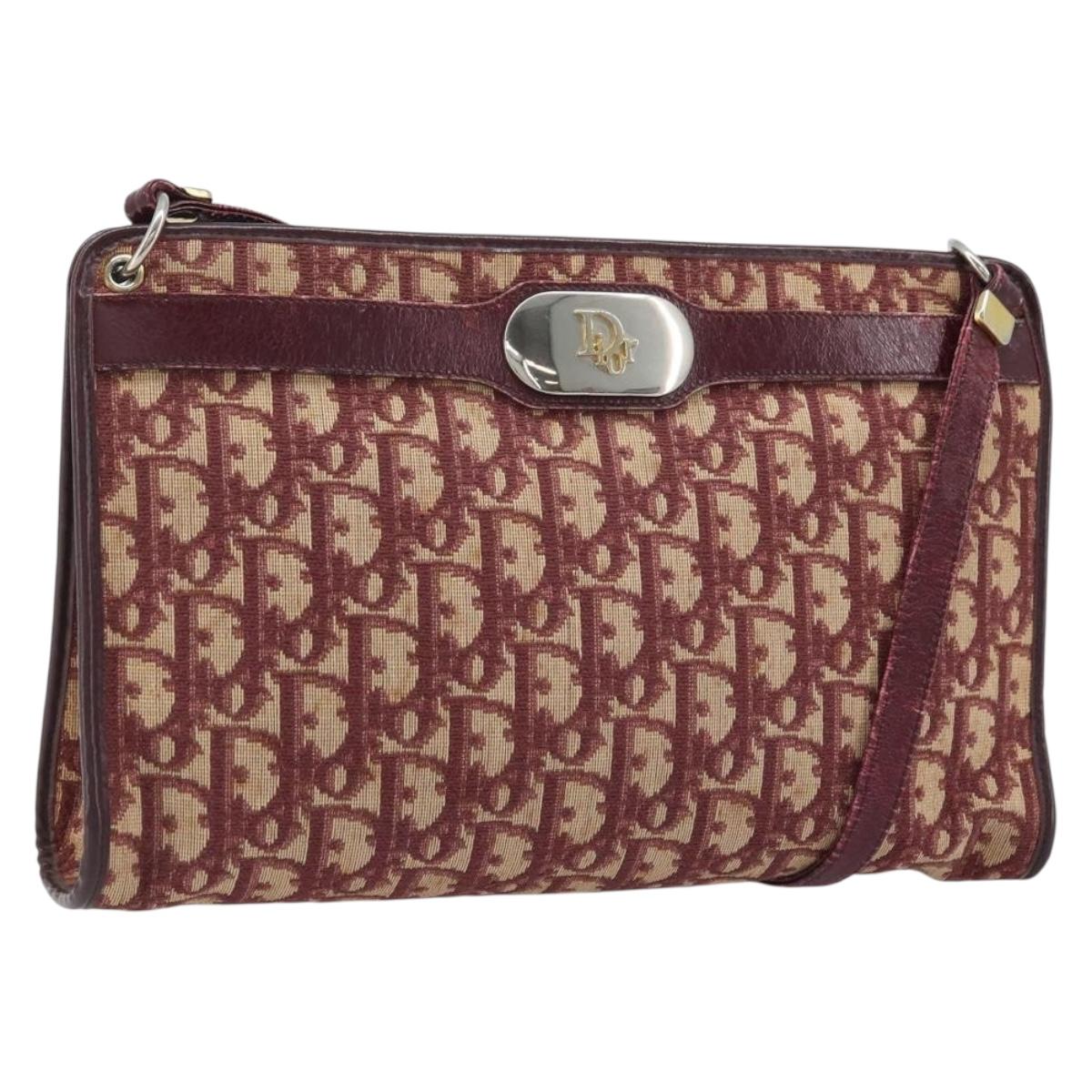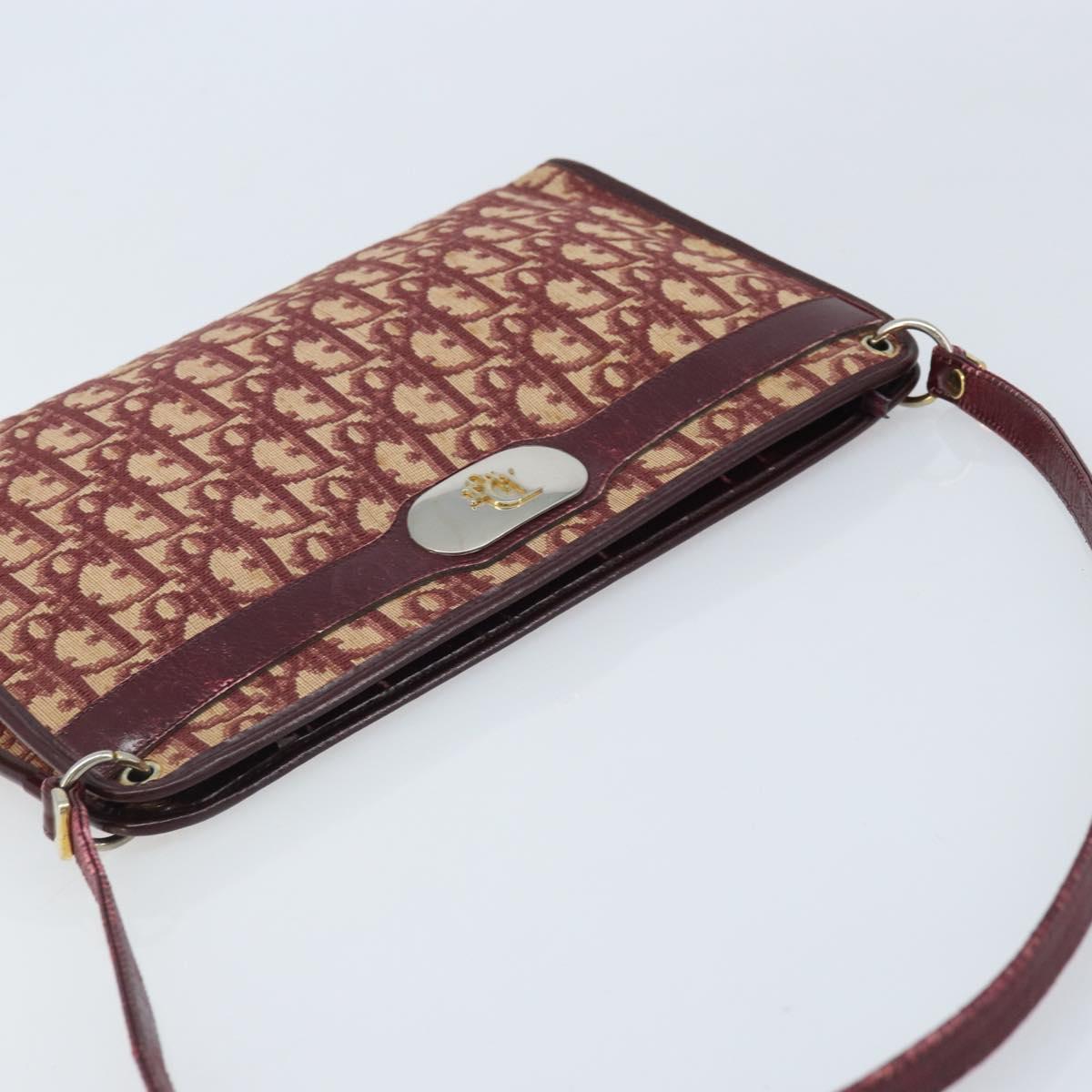 Christian Dior Trotter Canvas Shoulder Bag Red Gold Auth BAZ444