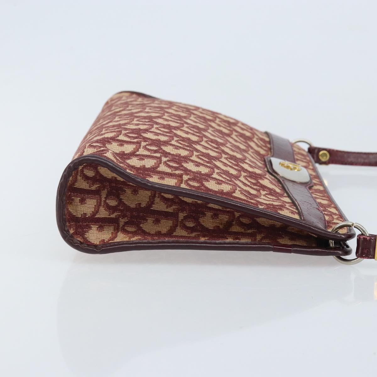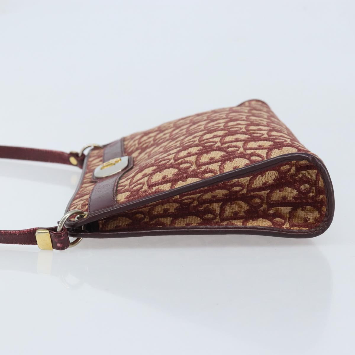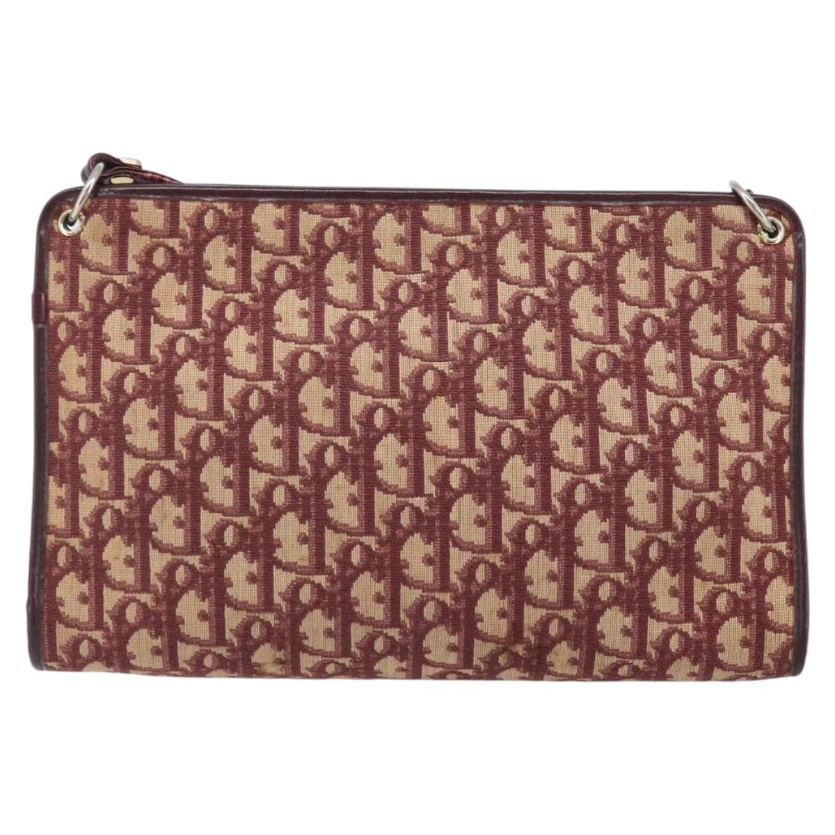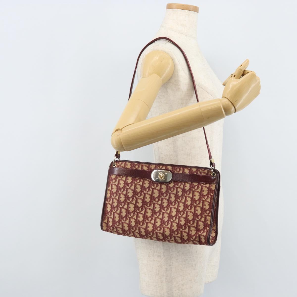 Christian Dior Trotter Canvas Shoulder Bag Red Gold Auth BAZ444