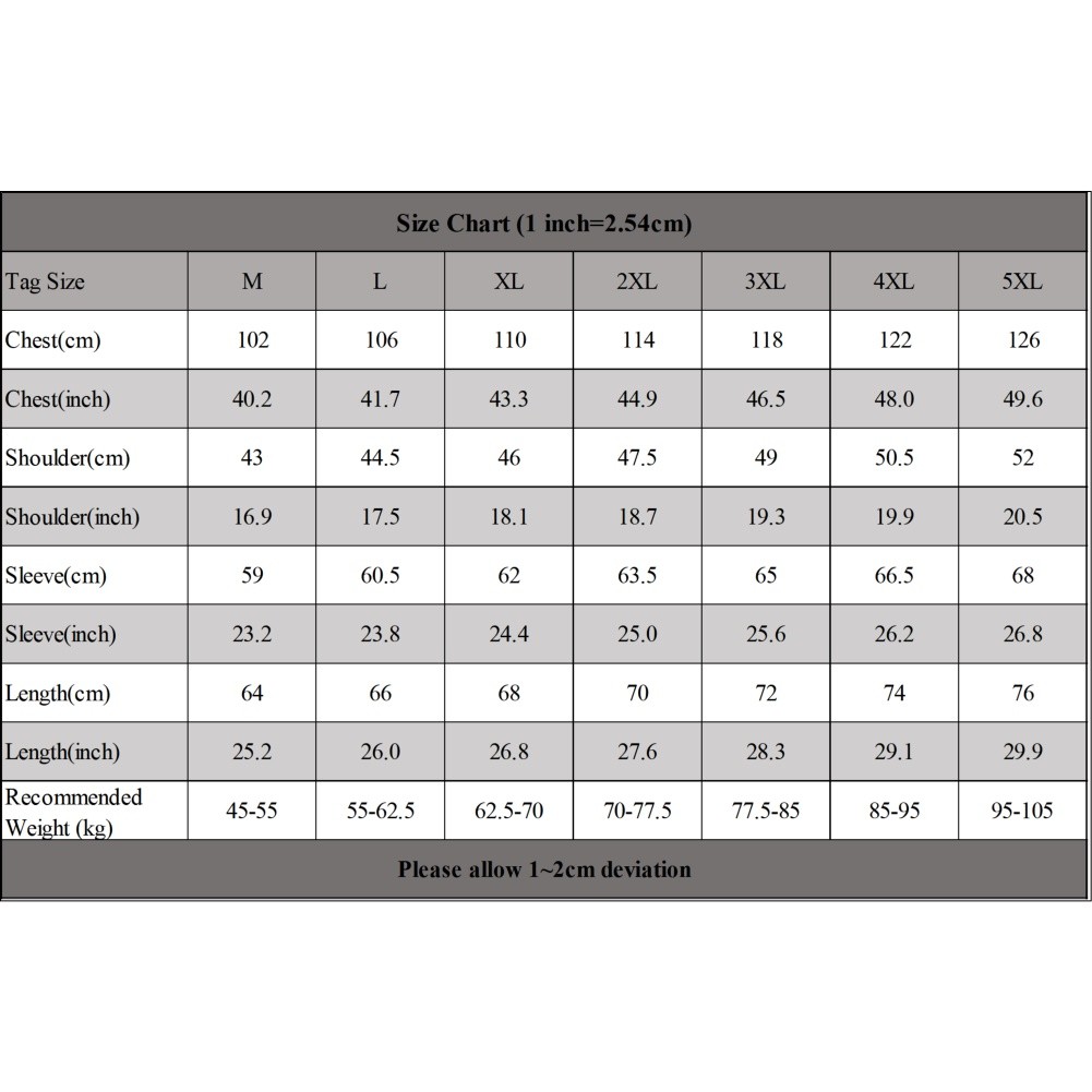 *Tag Size:M~5XL,Please make sure that these actual measurements will fit you.