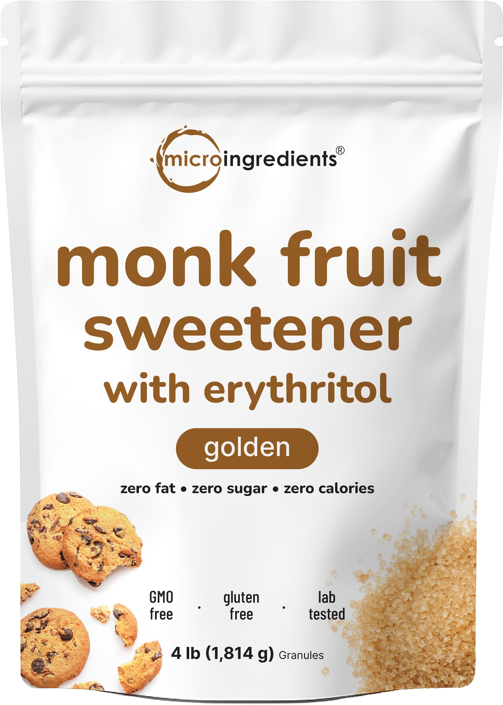 Micro Ingredients 2-in-1 golden monk fruit sweetener blended with erythritol. A granulated sugar free blend that is shown to be sweeter than classic white monk fruit and creates no aftertaste.