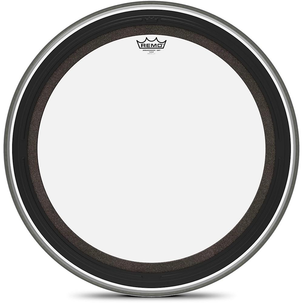 The Remo Ambassador SMT clear bass drum head is a pre-muffled design featuring Sub Muffl Technology. It is constructed with a clear 10-mil single-ply film, and an externally mounted dampening profile with free-floating acoustic foam. This enables the head and drum shell to maintain full sound characteristics with additional attack and low-end frequencies. SMT technology allows a broad tonal spectrum of tuning ranges with controlled high and mid frequencies coupled with deep, powerful low tones. It is ideal for live and recording applications, and available in 16" through 24" sizes.