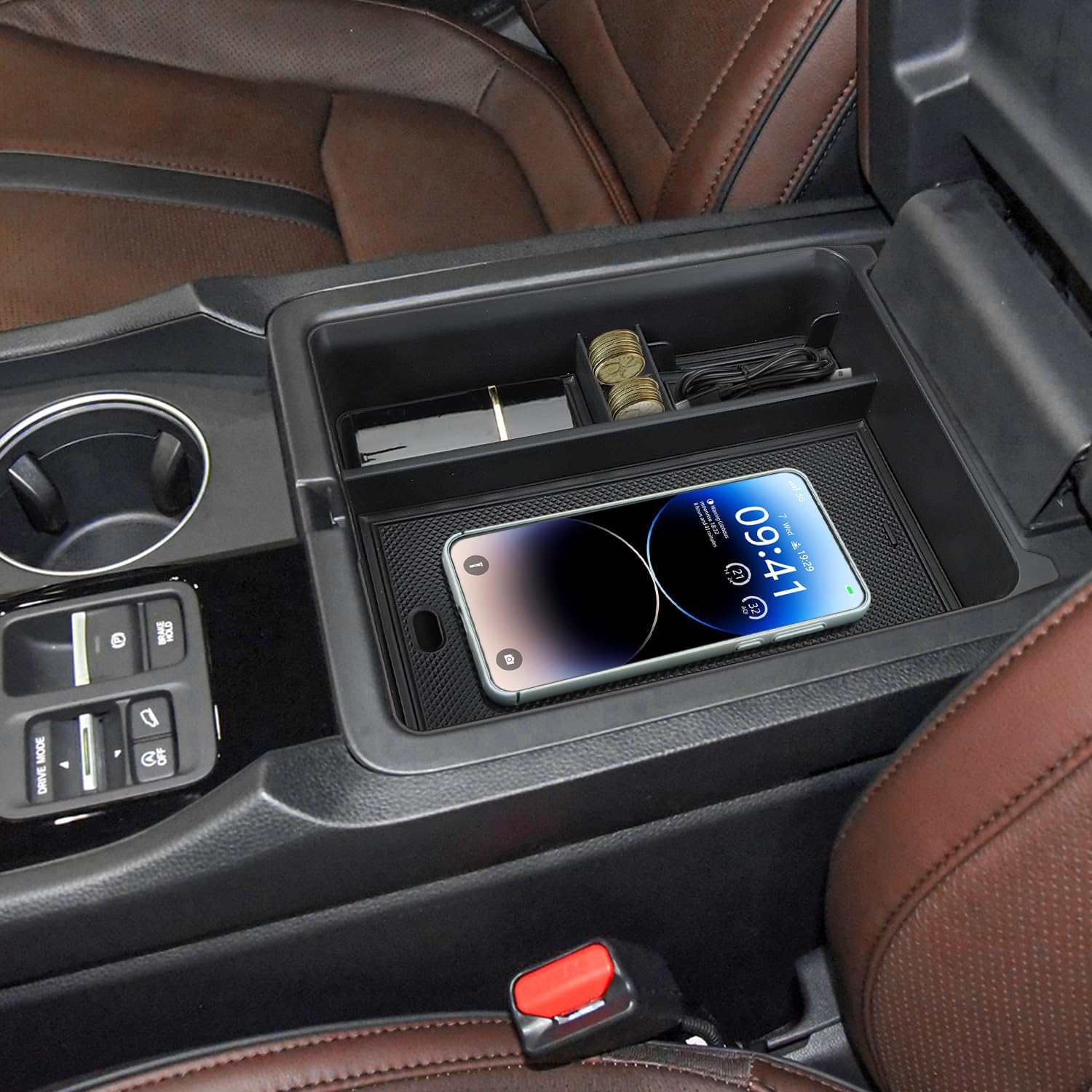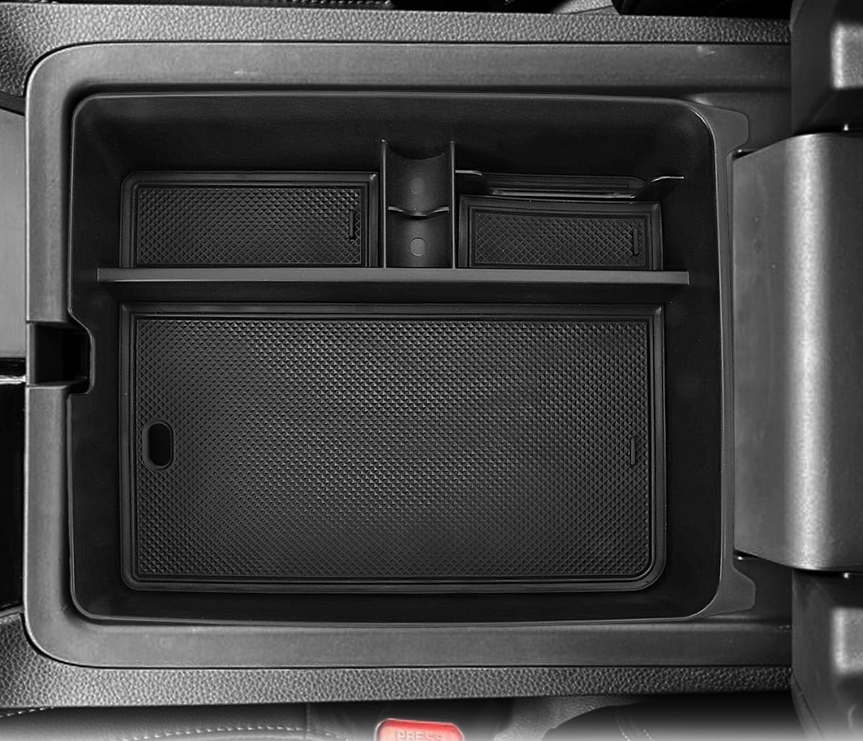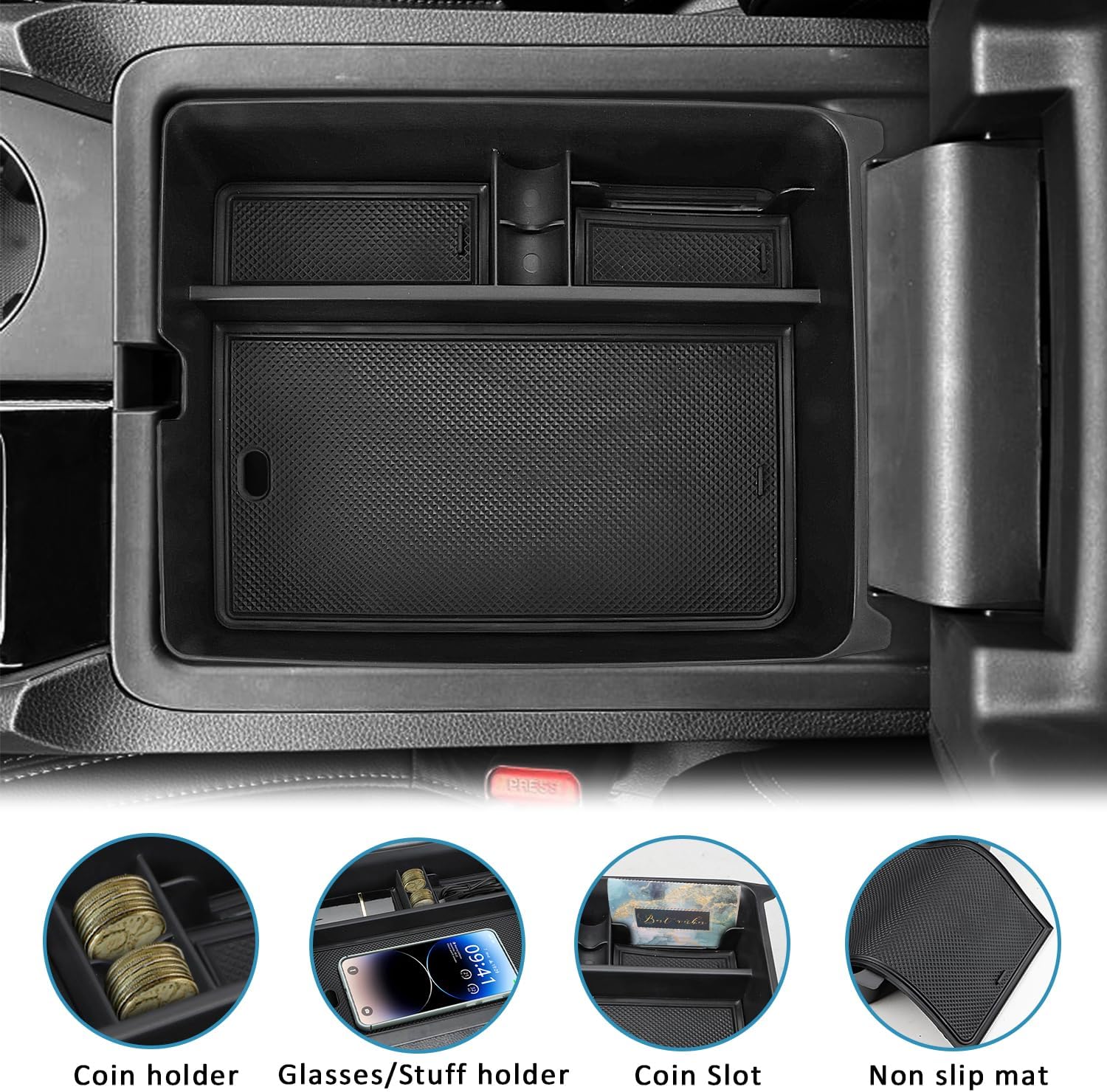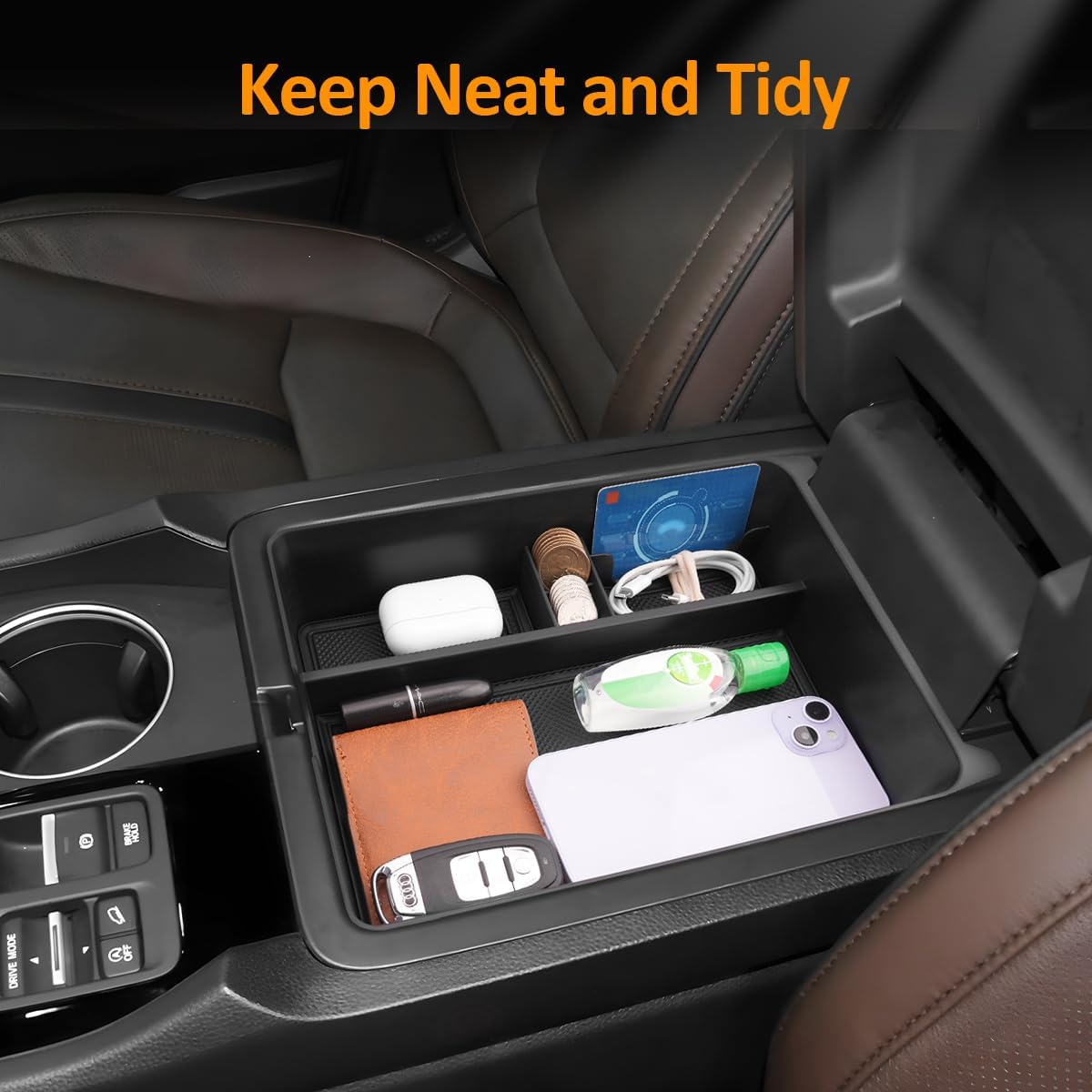 • Special Design - The console armrest box can maximize the storage in your center console. Provides additional storage space to manage your wallet, sunglasses, pens, business cards or phones, etc. There is a unique design of the area for your bank or credit card in case them missing.