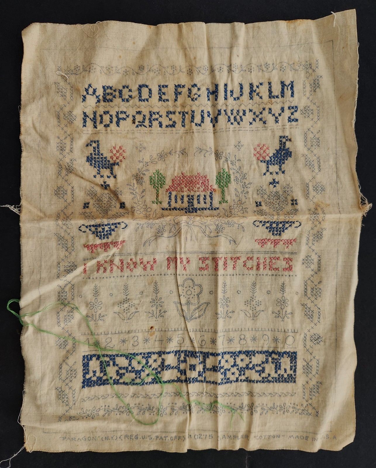 1920s antique CROSS STITCH SAMPLER paragon KNOW MY STITCHES primitive early