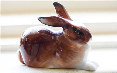 FOR SALE is this cutest little rare vintage brown & white porcelain Hare/Rabbit sitting. One ear is in the upright postion, the other laying horizontal with the body. Made in England by Royal Doulton 1940's, the makers stamp is on the base. What a gorgeous little hare numbered K37. Made by an expert craftsman, the details are amazing for something so small. His coat are different shades of brown, the inside of his large ears are tipped white, he has a white chest, paws & bob tail. This little hare is very hard to come by & highly collectable, will certainly increase in value as the years go by.