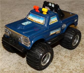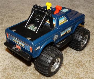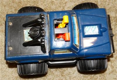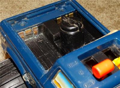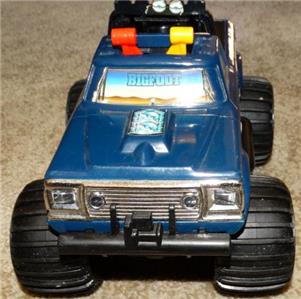 This sale is for a Playskool battery operated Big Foot from 1983. The truck is in very nice condition with light play wear especially to the decals. The key is missing. Unfortunately it did not run. There is some corrosion on the battery contacts. I did not try to clean it. The phillips head screw heads to the battery compartment are kind of stripped but a flathead screwdriver works.