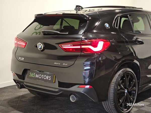 We are pleased to offer this BMW X2 20d M Sport SUV 5dr Diesel Auto xDrive finished in Sapphire Black.A stunning example with excellent specification including Tilt and Slide Panoramic Roof, Harmon Kardon Speaker System, M Sport Plus Package, Vision Pack, Sun Protection Glazing, Front and Rear Park Distance Control and much more.SpecificationM Sport Plus PackPanoramic Glass Sunroof20in M Light Alloy Wheels (716M)Perforated Oyster Dakota Leather UpholsteryComfort Access SystemVision PackPark Distance Control – Front & RearLED Headlights (with Extended Contents)Sun Protection GlazingHigh-Gloss Shadowline Exterior TrimM Sport Aerodynamic PackageM Rear SpoilerBlack Sapphire Metallic PaintAero CurtainHeated Front SeatsSport SeatsDashboard with Decorative StitchingAmbient LED LightingExtended Storage PackageActive GuardRear and Front LED Fog LightsHill Descent ControlCruise Control with Brake FunctionService & Maintenance:Service history presentFresh oil change just completedFull MOT includedTyres in great conditionAdditional Information:All HPI ClearComes with 3-Month Warranty as standard (extendable to 36 months)Low-rate finance packages availablePart exchange welcomePlease be advised that cosmetic defects and normal wear and tear, such as minor scratches or stone chips, may be present on any vehicle. All information and specifications have been provided to the best of our knowledge. We recommend confirming the listed specifications with a sales representative.Please call our lovely sales team to book a viewing or test drive on .Alternatively, visit our website for more photos, finance applications and access to our live chat system.