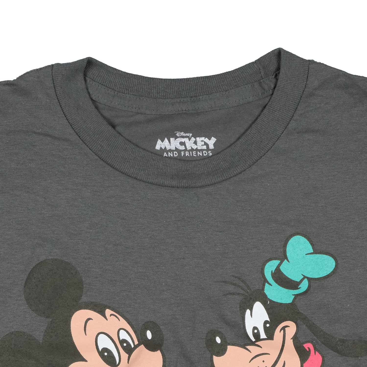 Bring the magic of Disney home with this charming Mickey Mouse and Friends men's T-shirt, featuring classic Disney characters! Centered on the shirt is the text "Mickey and Friends". Surrounding the text are character faces of Mickey Mouse, Minnie Mouse, Daisy Duck, Donald Duck, Pluto, and Goofy. This t-shirt is a great retro design for long-time fans of Disney and Mickey Mouse. Wear this t-shirt on your next vacation to Disneyland or Disney World or wear it as a casual addition to any pair of jeans.