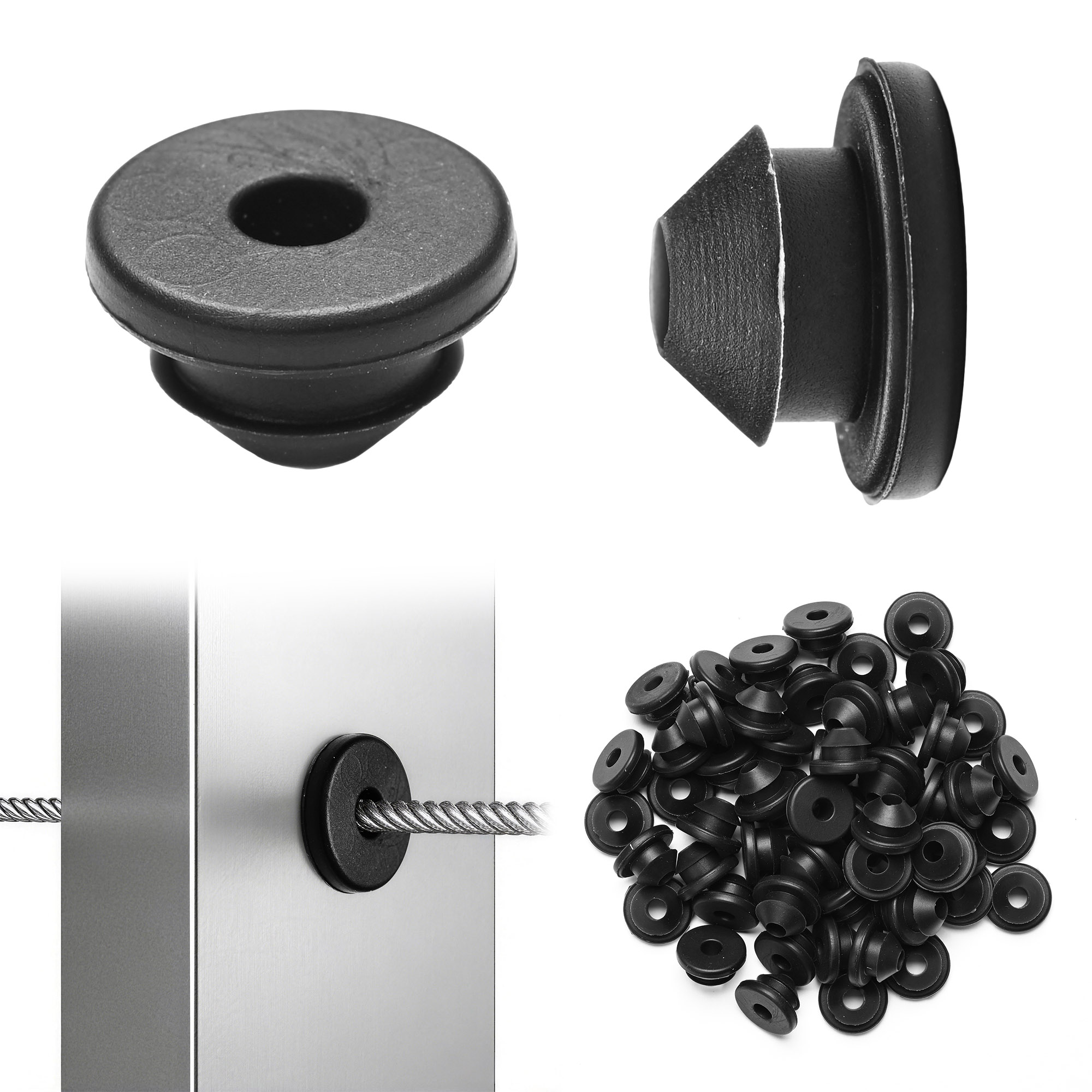 - Package Content - This kit includes 60 pcs rubber grommets, providing ample coverage for your cable railing project. Reach out to us for any questions or for assistance with any other cable railing system hardware