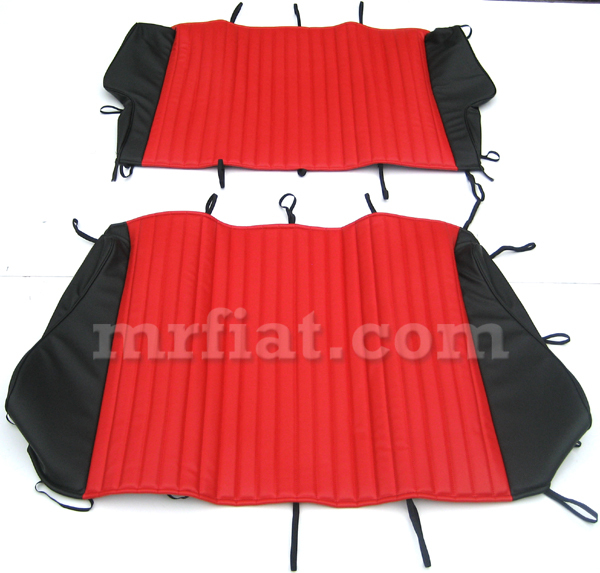 This is a new set of red and anatomical seat covers for all Fiat 126 models with no head rest. These seat covers have special cushioning that align to the anatomy of your body for extra comfort and hence the name anataomical seat covers. These seat covers are also availble in yellow, blue, and white as well as with Abarth, Fiat or Giannini logos embroidery. Call 678-637-5103 for questions.