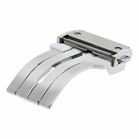 This clasp is made of 316L stainless steel and features a push button deployment mechanism. No logos or markings on the clasp.
