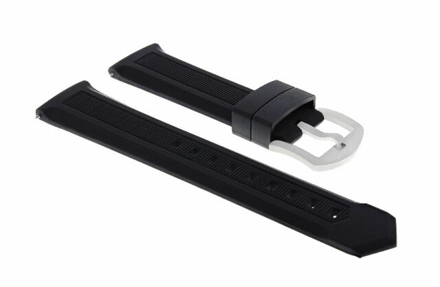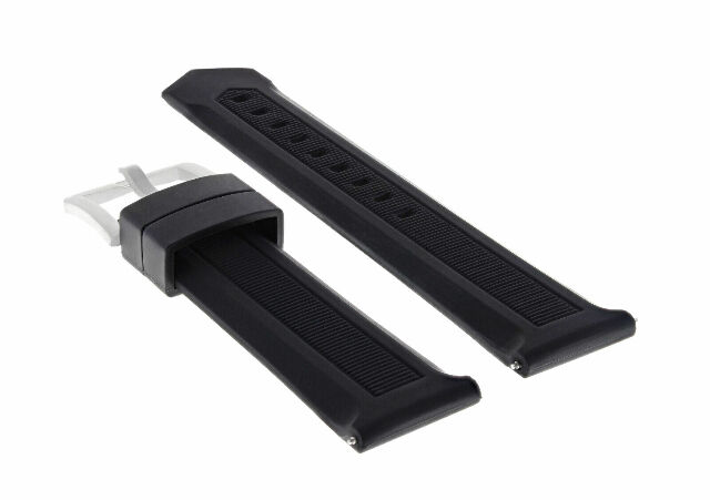 This strap is made of soft PVC rubber for comfort and durability. No logo or markings on the strap. Buckles are made of stainless steel and are interchangeable with original buckles.