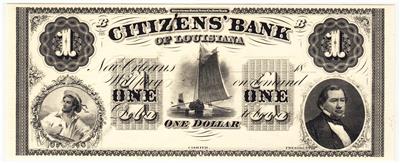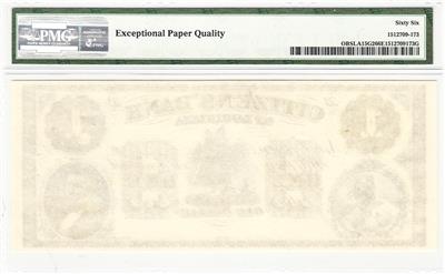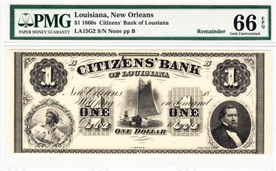 This is an extremeley rare find Obsolete of the series 1860's Citizens' Bank Of Louisiana $1 that is graded PMG GEM UNCIRCULATED 66.