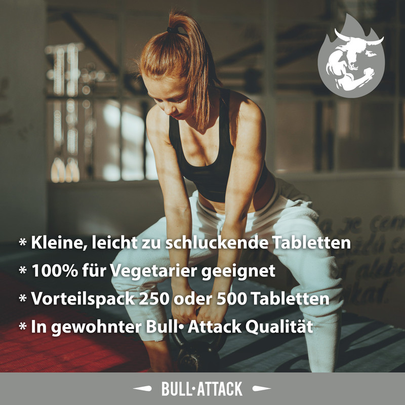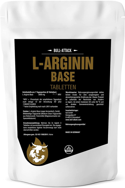 BULL ATTACK Arginin Base Tabletten - 500 Stück - Vegane, hochdosierte Arginin Tabletten ohne Zusatzstoffe