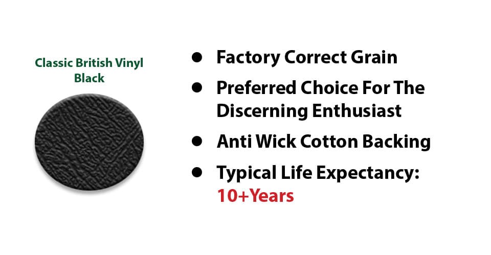 From the Prestige Factory Quality range of hoodsMade from Black Cabriotex® Classic British VinylIncludes original style hi-frequency welded plastic windowsZip down rear window as originalOriginal quality Black capped fasteners includedComputer cut for a precise fitSupplied ready to install - No sewing requiredInstallation guidance included for a DIY installation