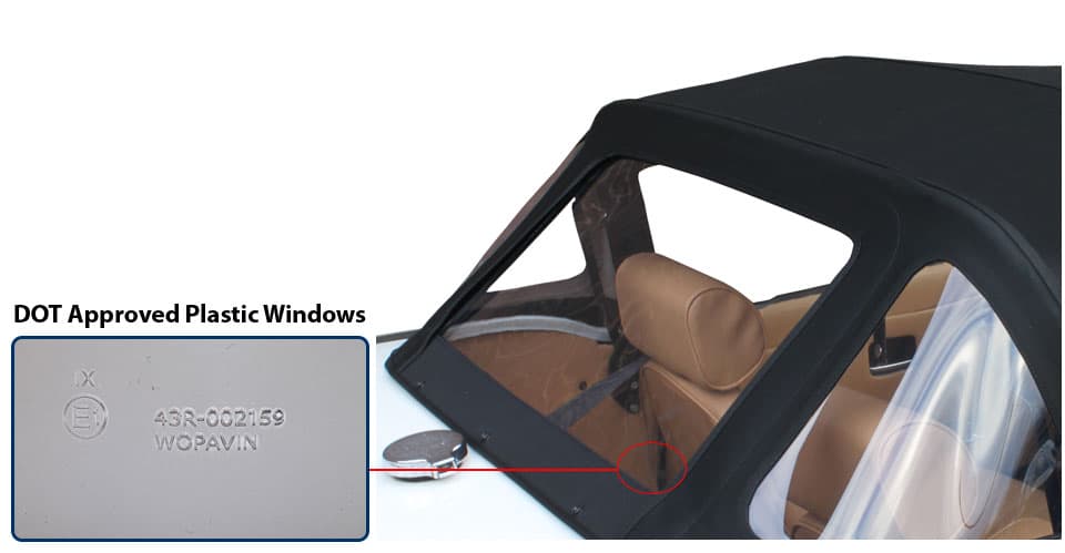 Prestige Spitfire hoods include original 1.00mm thickness, DOT approved windows.