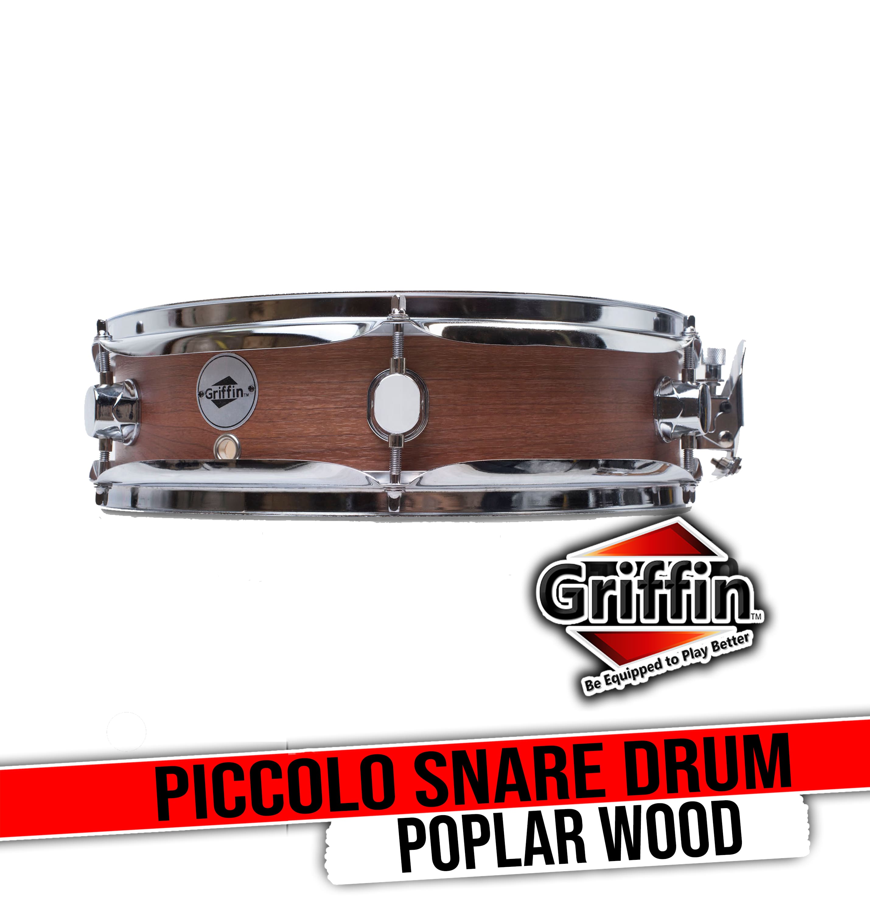 Flat Hickory Wood Finish 13” Piccolo Snare Drum Specifications