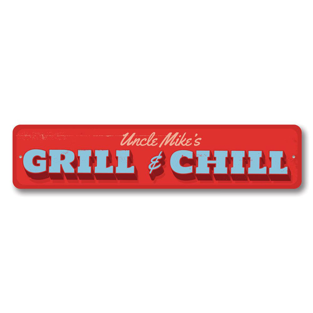 Grill & Chill Sign, Personalized Man Cave Name Sign, Custom Aluminum Metal Decor