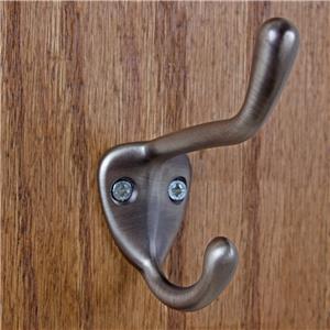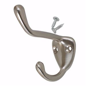 This 3-inch large robe/coat/hat double hook with a satin nickel finish from GlideRite Hardware will be of great use when you install them in places where you need to hang your hat, coat or towels. The traditional design of this coat hook makes it easy to blend well with rest of your home and interior wall decor. This hook is made of zinc alloy and comes with a lifetime replacement limited warranty. Each hook is individually bagged to prevent damage to the finish.