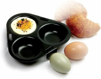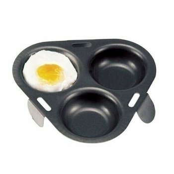 Nonstick finish for easy removal and easy clean-up. Perfect for making Eggs Benedict. Sits on 3 legs in a skillet or pan. Poaches 1 - 3 eggs.