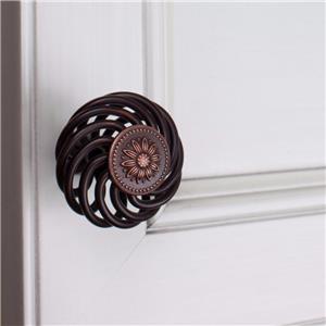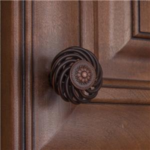 Update your kitchen cabinets or bathroom vanities with this beautiful 1-1/2-inch rustic bronze round flower birdcage cabinet knob. Attractive and durable, this birdcage knob will keep your cabinets looking great for years. This round knob is made of steel and comes with a lifetime replacement limited warranty. Each knob is individually bagged to prevent damage to the finish.