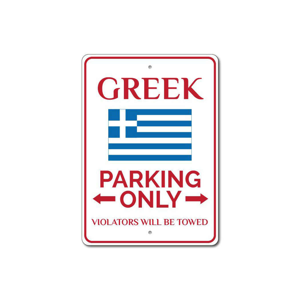 Greek Parking Sign, Greek Aluminum Metal Decor Sign