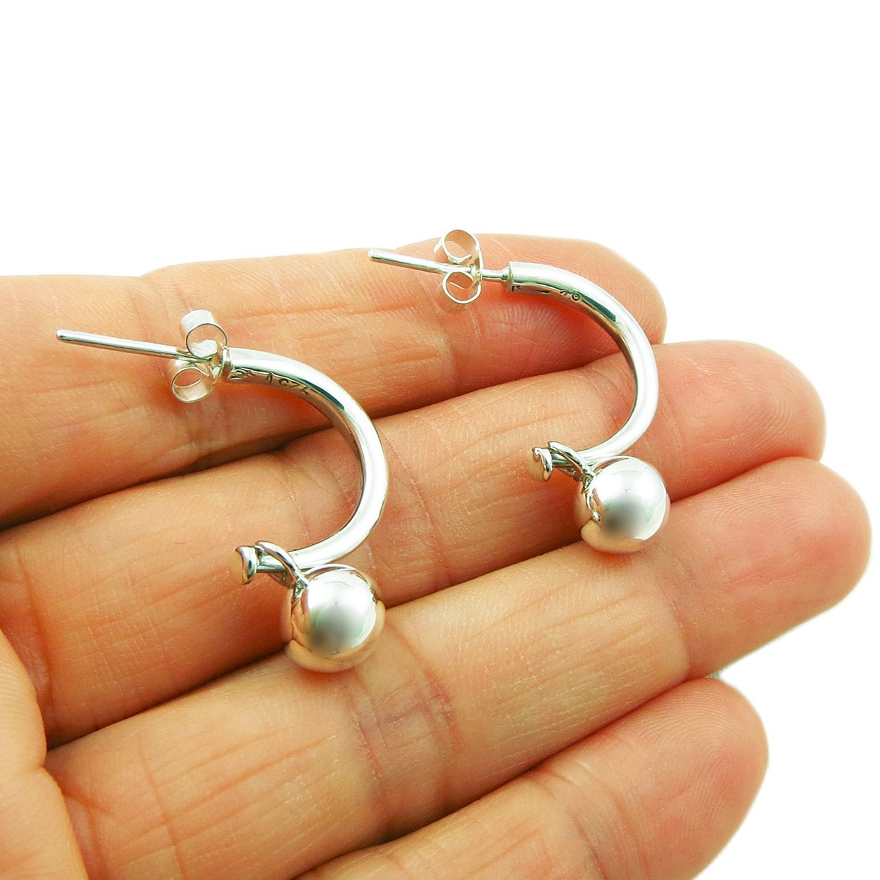 Two Way 925 Sterling Silver Ball and Half Hoop Earrings Gift Boxed