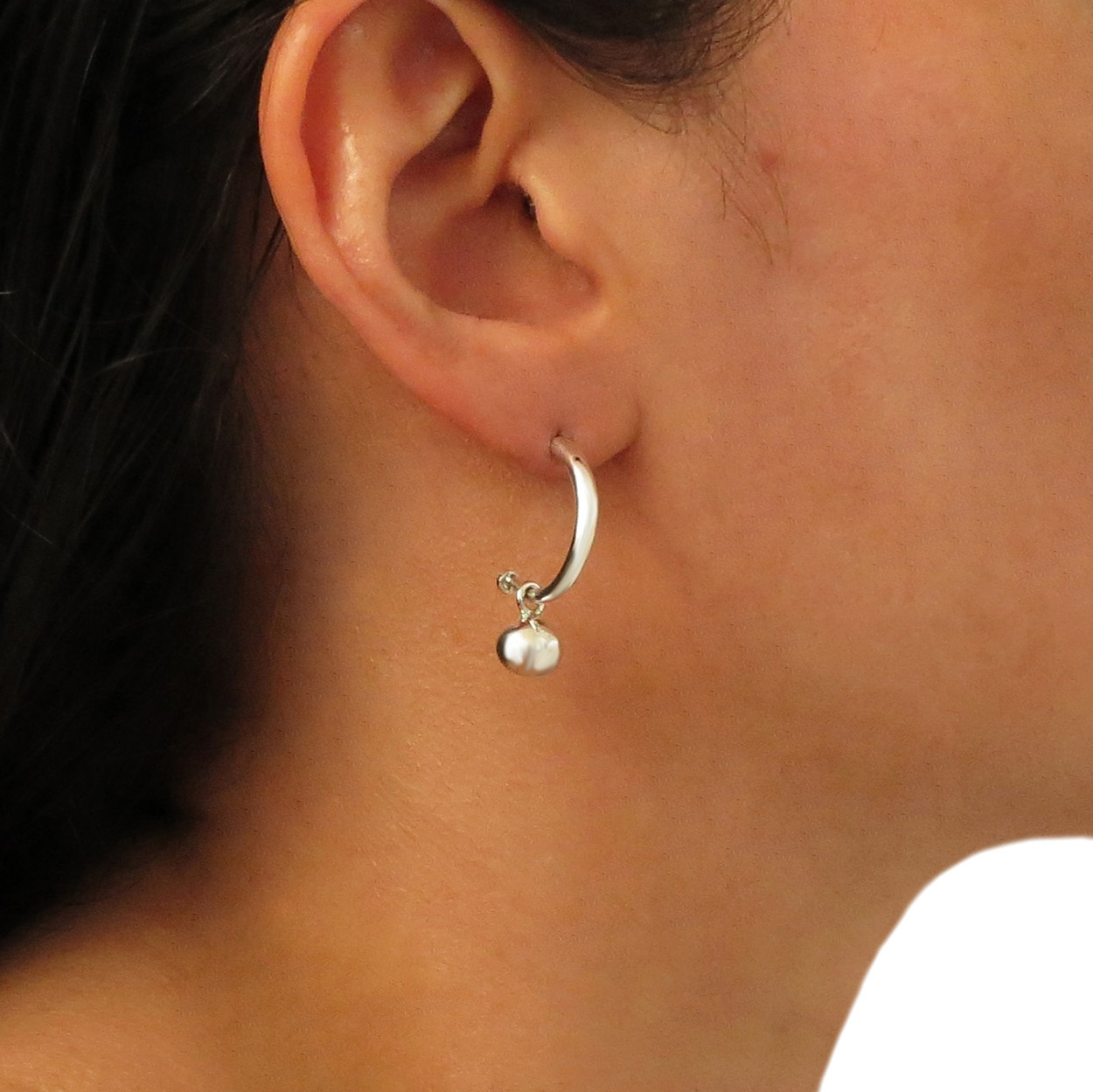 This popular 2 in 1 design is hand-made from 925 silver and features a small detachable ball bead. The ball bead is removable and can either be worn on the hoop or detached and worn as a small pendant or with other earrings.