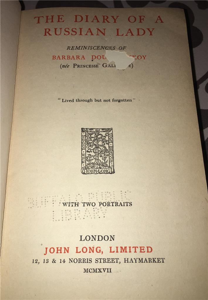 Barbara Doukhovskoy (nee Princess Galitzine). The Diary of a Russian Lady.