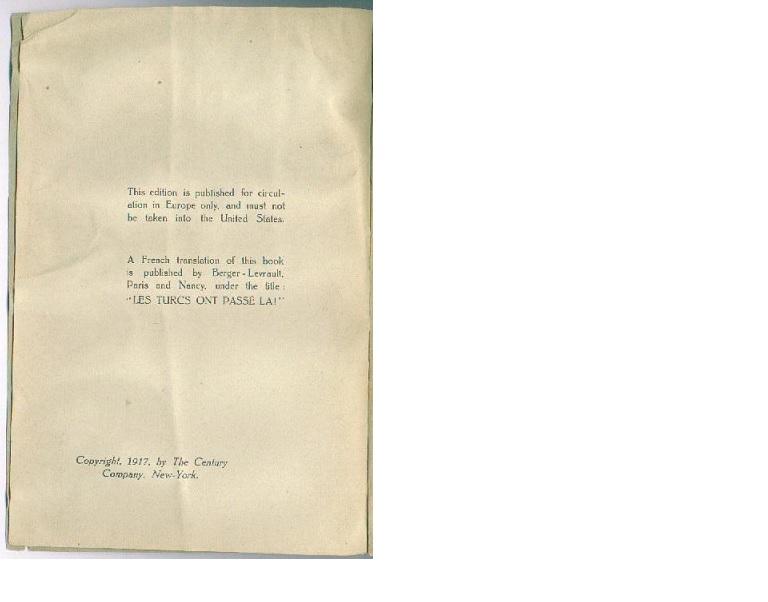 Second European edition. Very rare edition w/ photographs. Most U.S. editions got printed with no plates/photos. Printed in Paris by Hagop Turabian in 1919. A fair copy of this highly collectible book about the Armenian Massacres. An important cultural artifact. Softcover edition. 143 pages with two b/w photo plates. Printed for distribution in Europe. The book has a new spine, some edgewear, light wear to pages, some brittling and foxing, but no serious flaws.