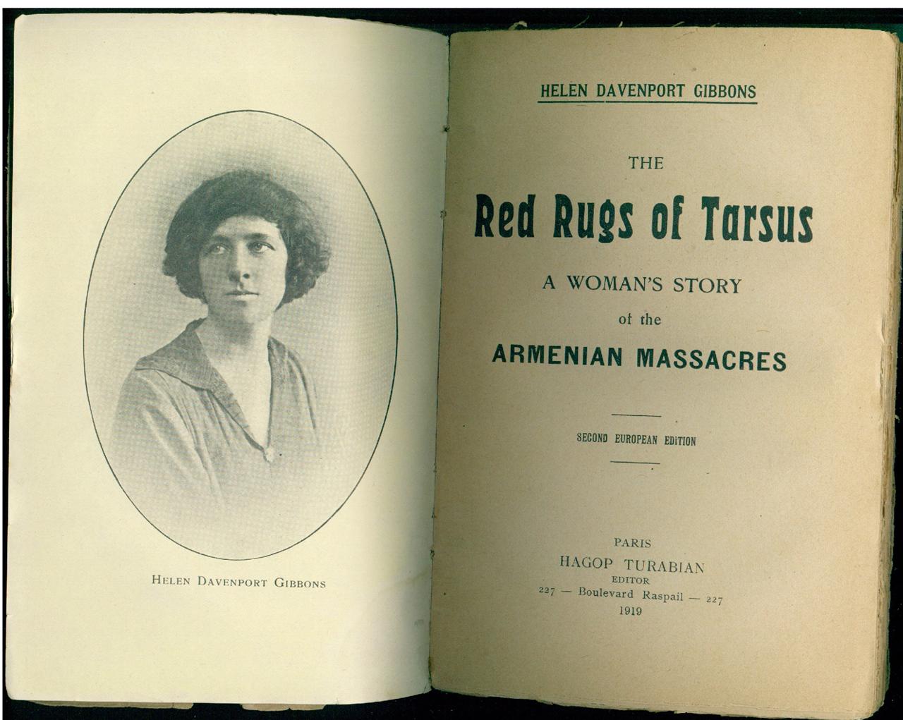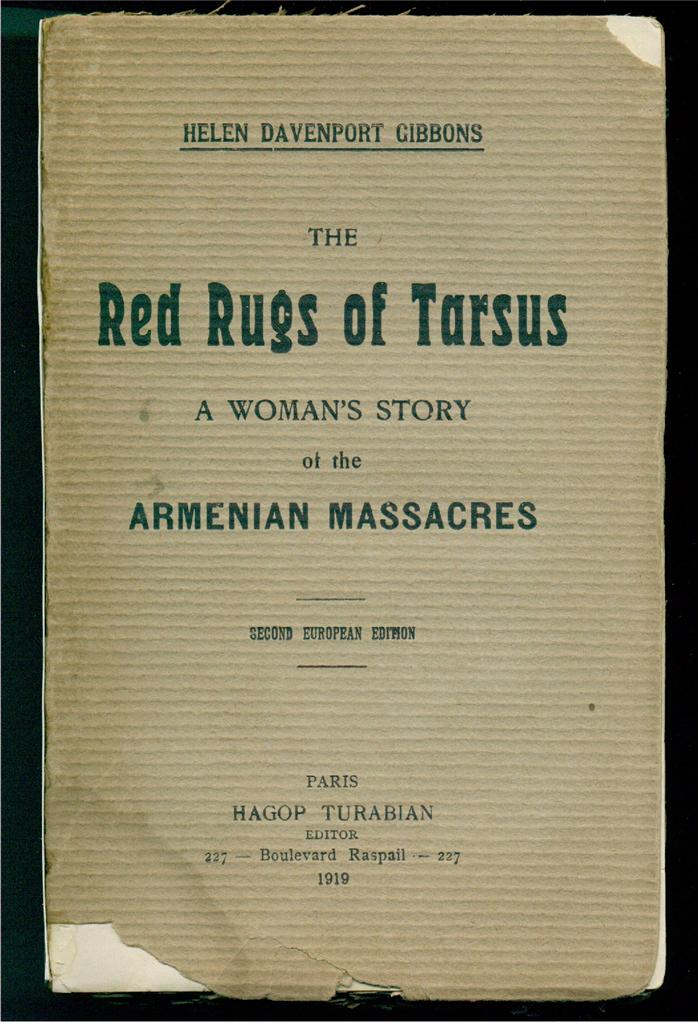 HELEN DAVENPORT GIBBONS [1882 – 1960] - An American journalist, author. In 1909 the Gibbons family witnessed the Armenian massacres in Tarsus, Turkey. Later (in 1917) Helen Gibbons wrote a book called “The Red Rugs of Tarsus” - a compilation of her letters describing those terrible events.