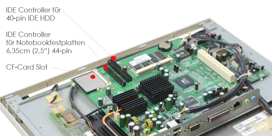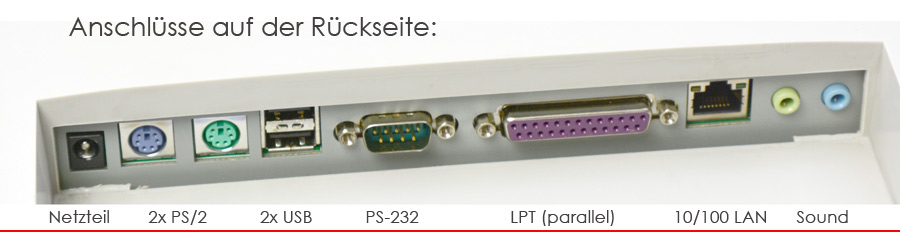 CPU via 1000 MHz, 40GB 44-PIN IDE hard disk, 256 MB SDRAM PC133 Notebook memory (is completely sufficient for Ms-dos to Win2000; memory is easy to upgrade to 512 MB or on 1GB), LPT printer interface, 10/100 network card, 2x RS-232 interfaces (1x externally, 1x on the board onboard still), stereo sound card. Ideal PC for house control, for machine control, as a MP3 player, advertising spot PC; It is an interesting, extraordinary computer solution - stable and very quiet! Only needs 12 volts; The 12V power supply is included; The PC can also be operated via an external 12V battery, for example on a boat, in the car, and much more. This PC solution can be attached to the wall or table, either on the back or on the vesa bracket (the foot is not part of the scope of delivery).
