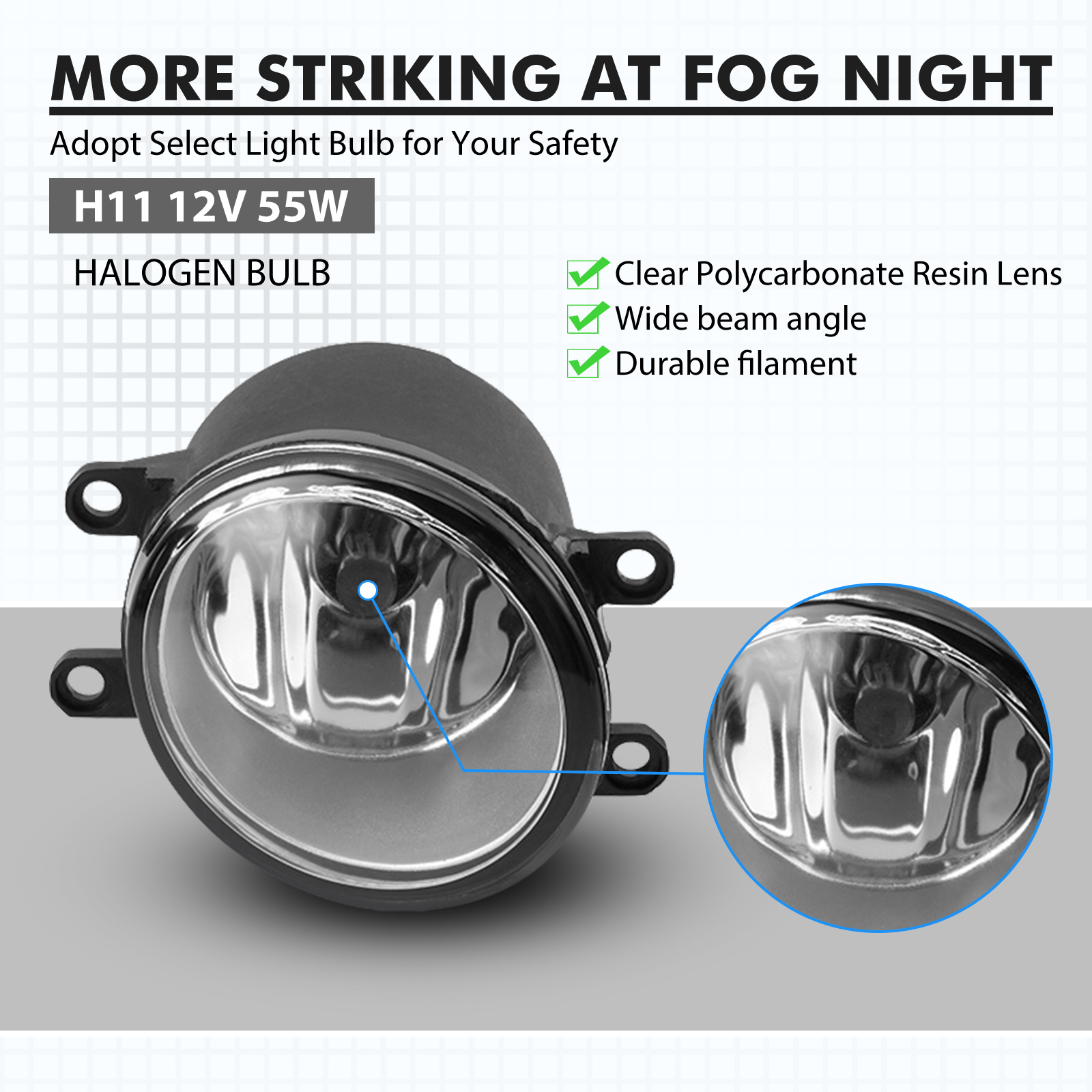 Feature: Easy to install, long lasting, low power consumption Very bright, best replacement for the worn light Specification Condition: New Surface Finish: Clear Lens Material: ABS Lens Material: Polycarbonate Resin Size:As the picture show Other Part Number: WJ30-0074-09 Package include: 2 X fog light (2pcs H11 12v/55w fog light bulbs) 1 X switch 1 X cables 1 X relay 2 X Lamp frame Fitment: 2006-2011 For Toyota Yaris Sedan (Sedan models only,not fit Hatchback)