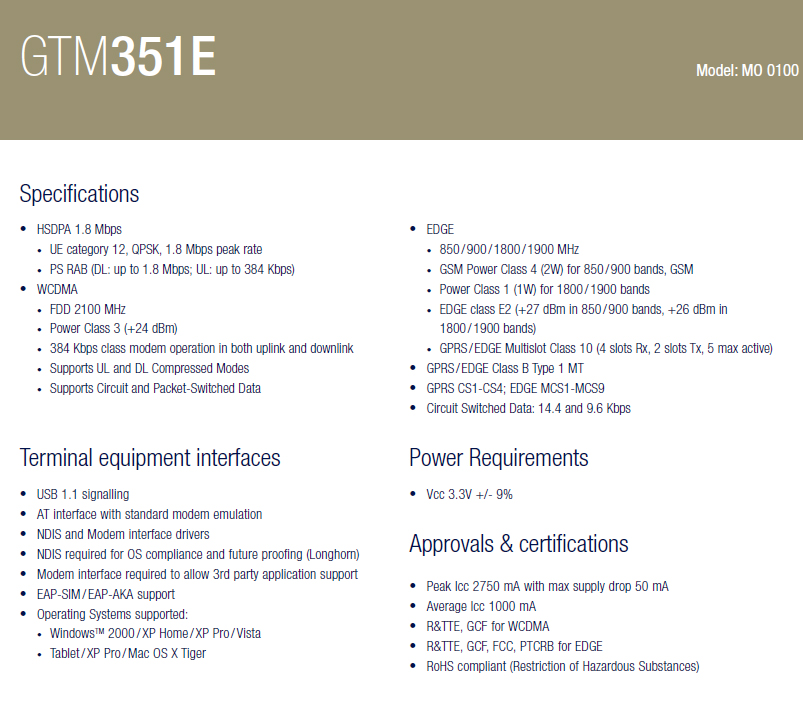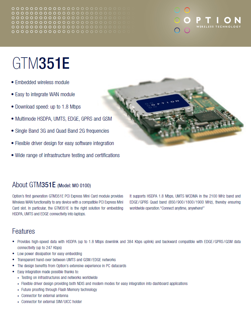 Model: GTM351E PCI Express Mini Card