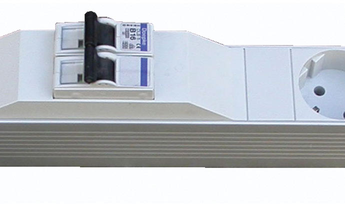 Sehr hochwertig und hochquaitative Steckdosenleiste aus dem Hause RITTAL im Alu Gehäuse, mit automatischen Sicherungen: Bei Überspannung werden angeschlossene Geräte automatisch vom Strom abgeschaltet!