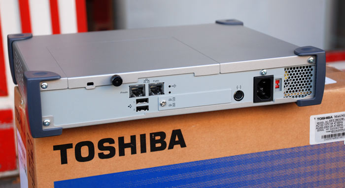 Der Toshiba Magnia SG25 Appliance (=Anwendungs) Server ist ein Gerät, mit dem Sie verschiedene Computer über ein integriertes verkabeltes oder kabelloses Netzwerk zu einem einzelnen System verbinden können. Er bietet alle wesentlichen Netzwerkfunktionen,