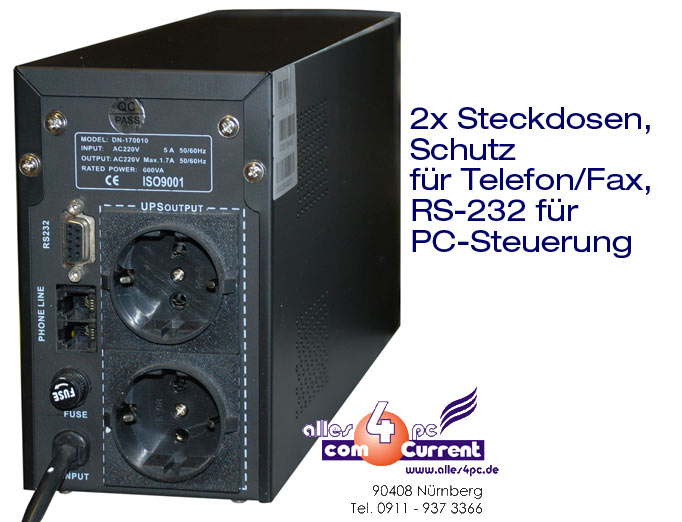 220/230 Volt Notstromversorgung für ISDN-Anlagen, Computer, Fax, Server, Arbeitstationen, Meßgeräte, Labor u.v.m.