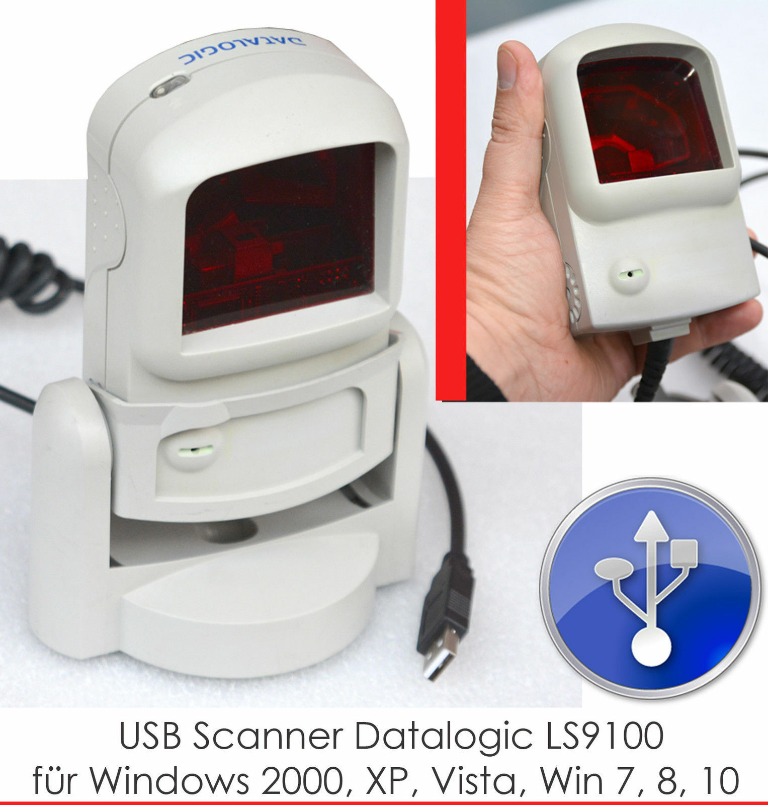 Progettato per l'uso al bancone, in cui lo spazio è stretto, lo scanner Laser Datalogic rappresenta lo scanner ideale Z. B. per chiosco, stazioni di benzina o farmacie, nel tesoro o nell'area di presentazione del commercio al dettaglio, nonché per bevande e negozi speciali. Inoltre, la forma unica e sagomata dello scanner gli consente di usarlo come scanner portatile per scansionare oggetti grandi o voluminosi. A causa della sua ergonomia favorevole, il Datalogic aumenta il tasso di scansione al primo processo di lettura e quindi consente l'ordine del cliente e la massima produttività. La testa di scansione può essere ruotata verticalmente 30 °, un'ulteriore flessibilità per l'impostazione individuale dell'utente.