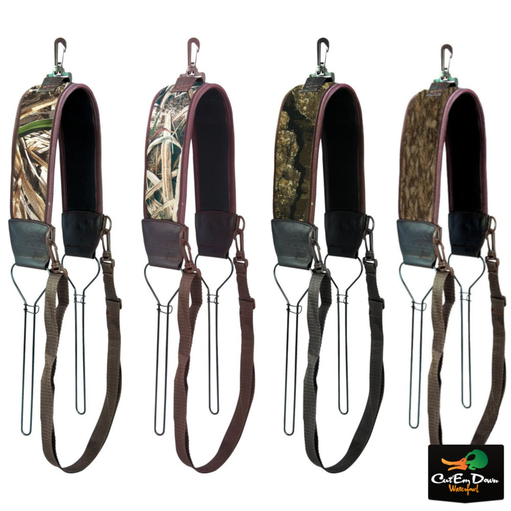 This game tote is made with two wire loops with a safety clip to prevent losing your birds during transit. This model has our "No Hands" feature with attached waist strap to insure that the strap stays in place as you walk, keeping your hands free for your other gear. 5mm neoprene padded shoulder strap makes for a comfortable ride even when loaded with limits of ducks.