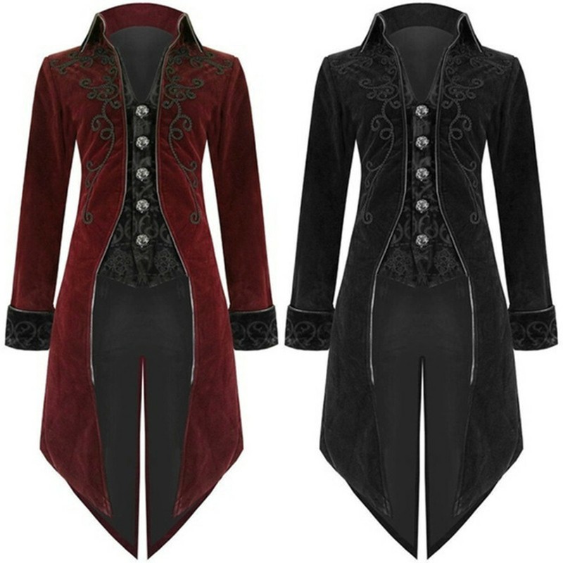 Mens Medieval Jacket Pirate Costume Tailcoat Coat
