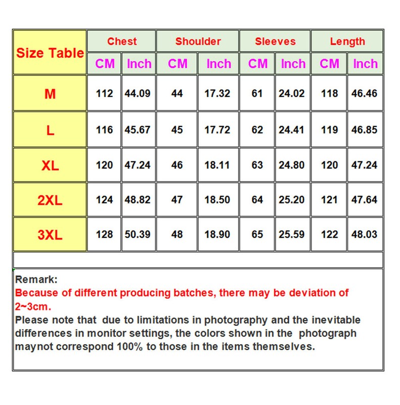 | Asian 3XL=US XL |