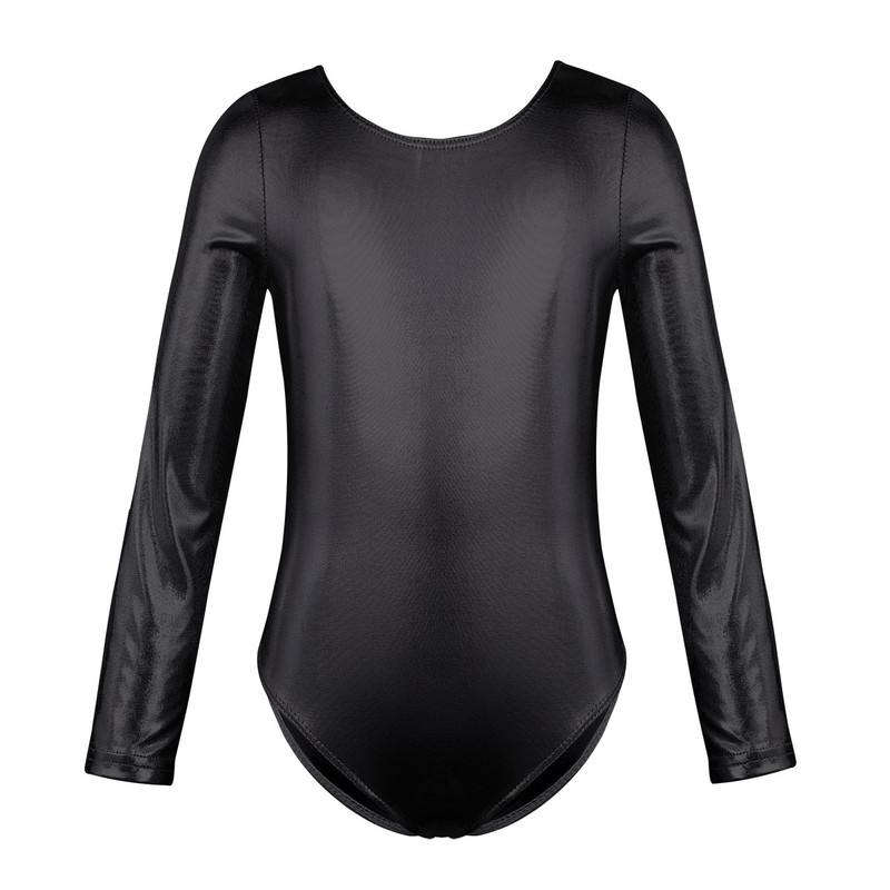 Long sleeves, round neckline, U back design. Glittery appearance, solid color.