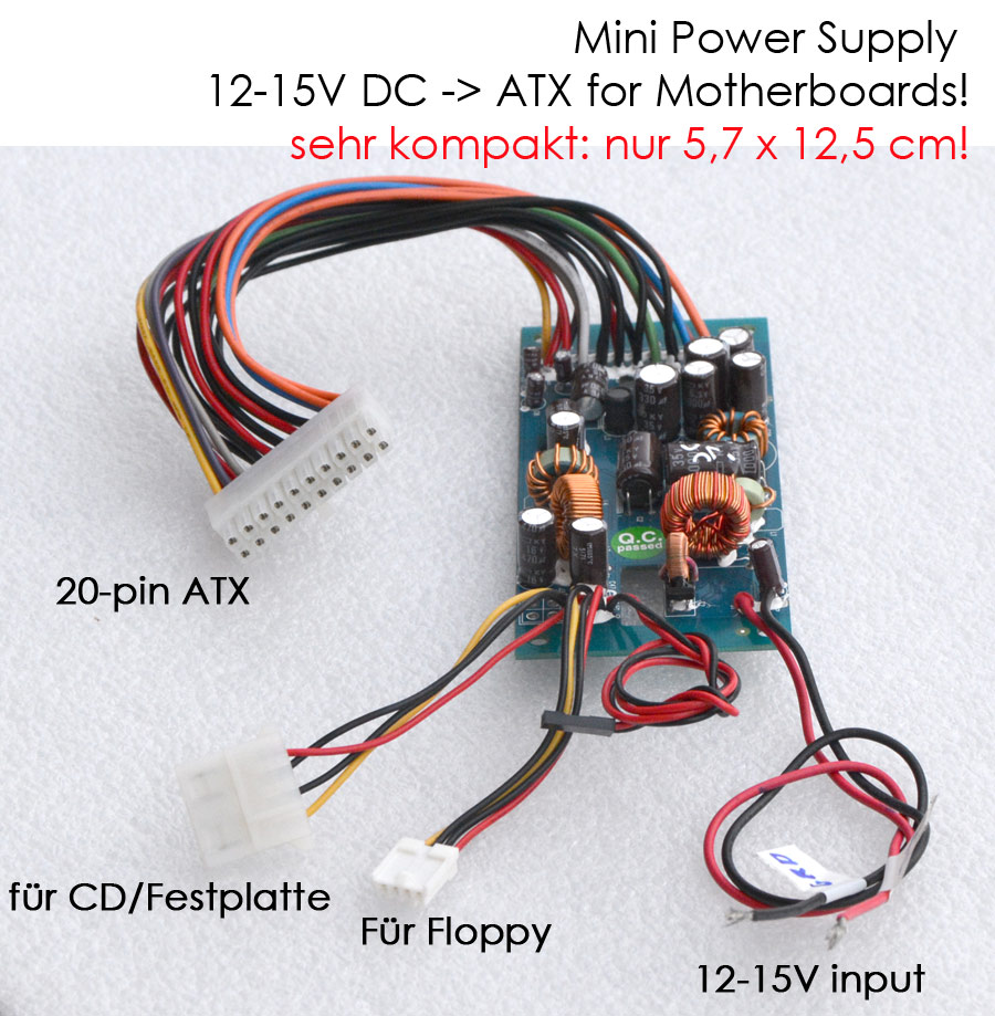 Scope of delivery: 1x 12-15V-> ATX converter / power supply as shown and described.